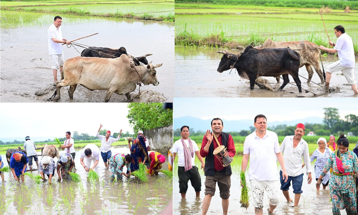 सीएम धामी ने खटीमा में की धान रोपाई, किसानों के श्रम को किया नमन