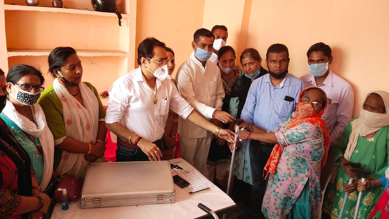 भाजपा महिला मोर्चा ने दिव्यांगों को बांटे उपकरण