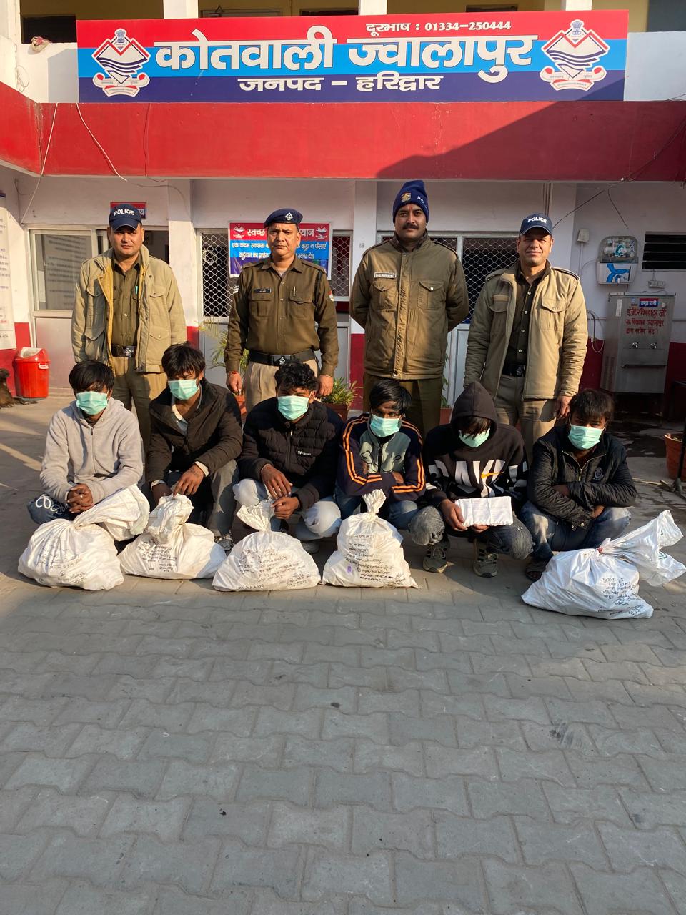 हरिद्वार, 12 दिसम्बर। ज्वालापुर कोतवाली पुलिस ने अवैध रूप से शराब व सट्टे के कारोबार में संलिप्त 6 आरोपियों को गिरफ्तार किया है। आरोपियों के कब्जे से देशी शराब के 160 टैट्रा पैक, अंग्रेजी शराब के 104 पव्वे, सट्टा सामग्री व 2100 रूपए नकद बरामद हुए हैं। बीती रात ज्वाालपुर पुलिस ने क्षेत्र में छापेमारी अभियान चलाया और अवैध रूप से शराब का धंधा कर रहे 5 आरोपियों व सट्टे की खाईबाड़ी कर रहे एक आरोपी को दबोच लिया। आरोपियों के खिलाफ आबकारी अधिनियम व जुआ अधिनियम के तहत मुकद्मे दर्ज किए गए हैं।