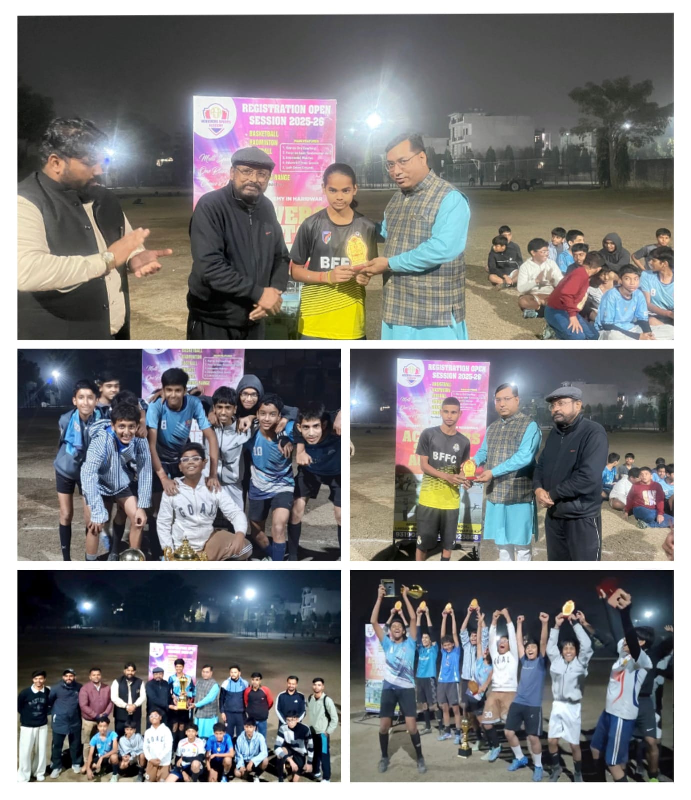 अचीवर्स होम पब्लिक स्कूल के स्पोर्टस ग्राउंड पर 4 दिसम्बर से आयोजित इंटर एकेडमी फुटबॉल टूर्नामेंट में वेजिटेरियन क्लब, रोशनाबाद ए, ग्लोसी एफसी, अचीवर्स स्पोर्ट्स एकेडमी, बीएचईएल एफसी, बीएफएफसी एकेडमी और रोशनाबाद एकेडमी बी की टीमों ने प्रतिभाग किया। टूर्नामेंट का उद्घाटन डायरेक्टर नितिन अहलूवालिया ने किया था।