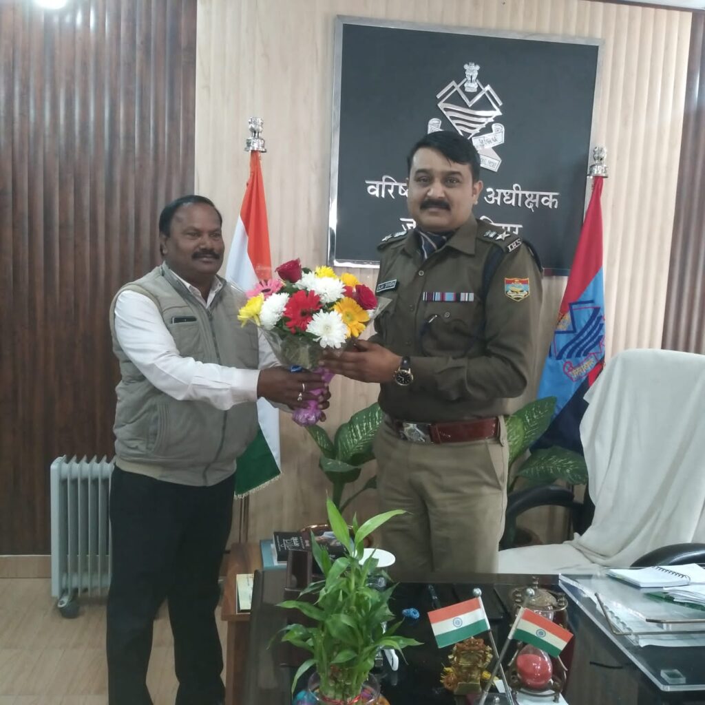 हरिद्वार, 16 दिसम्बर। ज्वालापुर के मौहल्ला कड़च्छ से अपहृत किए गए आठ माह के बच्चे को सकुशल बरामद करने पर उत्तराखणड राज्य आंगनबाडी कर्मचारी संघ हरिद्वार जनपद के प्रतिनिधि मण्डल ने जिला अध्यक्ष ममता बादल के नेतृत्व में वरिष्ठ पुलिस अधीक्षक अजय सिंह सें मुलाकात की और उन्हें फूलो का गुलदस्ता भेंटकर सम्मानित किया। प्रतिनिधि मण्डल में शामिल रहे महादलित परिसंघ के प्रदेश अध्यक्ष राजेश बादल ने भी एसएसपी को गुलदस्ता देकर सम्मानित किया।