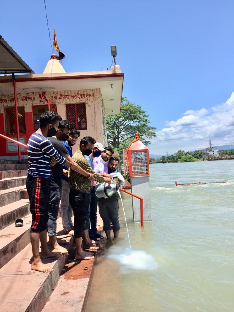 मां गंगा भक्त की सूक्ष्म आराधना से ही प्रसन्न होकर मनवांछित फल देती है। उन्होंनें कहा कि कोरोना संक्रमण को फैलने से रोकने के लिए सभी को सजगता से कार्य करना चाहिए। सोशल डिस्टेंसिंग, मंूह पर मास्क का इस्तेमाल अवश्य करें। विष्णु अरोड़ा ने कहा कि मां गंगा सभी की पालनहार है। मां गंगा को स्वच्छ निर्मल बनाए रखने के लिए सभी को मिलजुल कर प्रयास करने चाहिए। दुग्धाभिषेक करने वालों में विधायक प्रतिनिधि अनुराग मिश्रा, शुभम पाल, वीरू सोलंकी, राजन मेंहदीरत्ता, जागेश पाल आदि शामिल रहे।