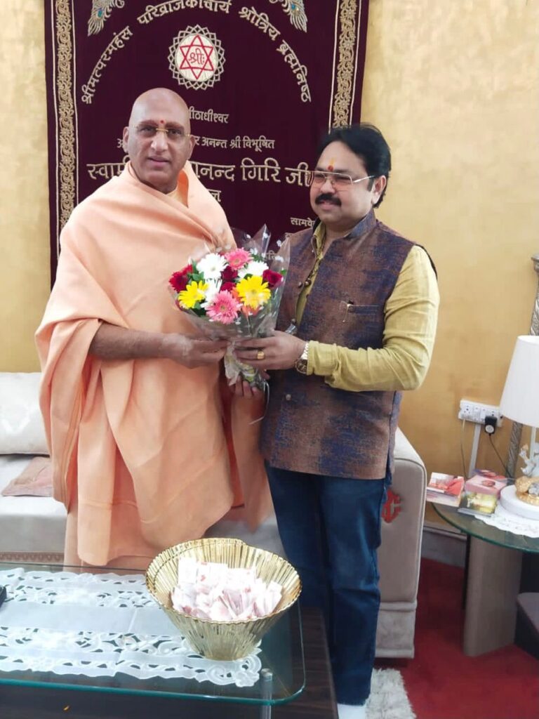 डा.विशाल गर्ग को आशीर्वाद व शुभकामनाएं प्रदान करते हुए शंकराचार्य स्वामी राजराजेश्वराश्रम महाराज ने कहा कि सत्यनिष्ठा के साथ समाज व मानव कल्याण में योगदान करना ही राजनीति है। उन्होंने कहा कि समाज के वंचित व जरूरतमंदों की सेवा करते हुए उन्हें योजनाओं का लाभ दिलाने में सहयोग करें। जूना अखाड़े के आचार्य महाण्डलेश्वर स्वामी अवधेशानंद गिरी महाराज ने कहा कि ईमानदार, शिक्षित व कर्मठ लोगों के राजनीति में आने से ही जनसामान्य की समस्याएं दूर होंगी ओर देश की दशा व दिशा बदलेगी।