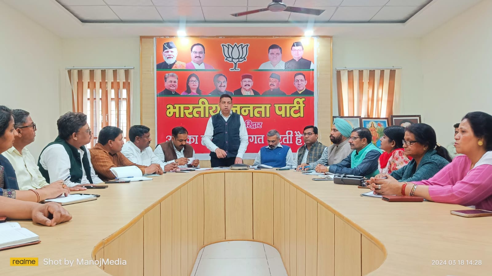हरिद्वार, 18 मार्च। जगजीतपुर स्थित भाजपा जिला कार्यालय पर लोकसभा चुनाव को लेकर आयोजित बैठक के दौरान कार्यकर्ताओं को संबोधित करते हुए जिला अध्यक्ष संदीप गोयल ने कहा कि लोकसभा चुनाव कार्यक्रम की घोषणा हो चुकी है। सभी कार्यकर्ता एकजुट होकर सक्रिय भूमिका निभाते हुए पार्टी प्रत्याशी की जीत के लिए प्रयास करें ओर प्रधानमंत्री नरेंद्र मोदी के हाथों को मजबूत करें।