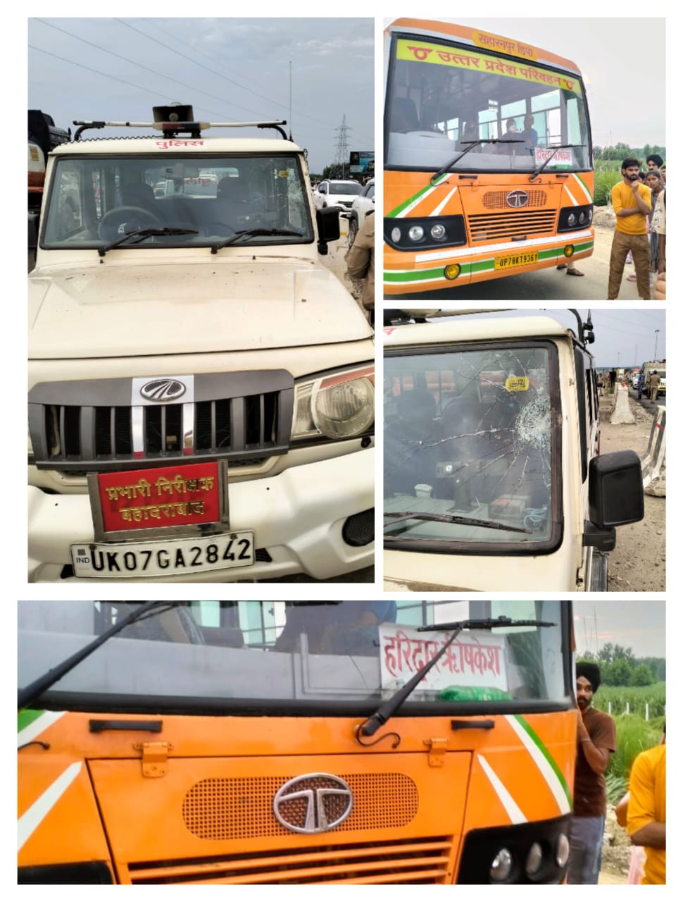 हरिद्वार :-कांवड़ यात्रा के दौरान बहादराबाद टोल प्लाज़ा पर कांवड़ खंडित हो जाने से कुछ कांवड़ियों द्वारा मार्ग अवरुद्ध करने का प्रयास किया गया।पुलिस द्वारा जब यातायात सुचारु करने का प्रयास किया गया, तो कुछ असामाजिक तत्वों ने पथराव कर रोडवेज बस एवं थाना मोबाइल वाहन के शीशे क्षतिग्रस्त कर दिए।