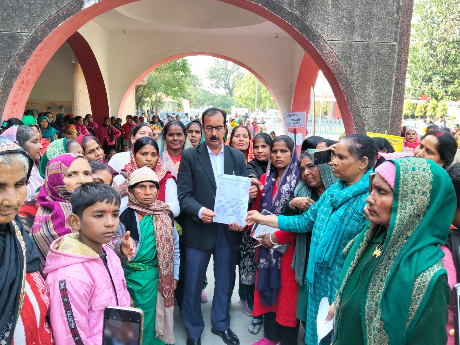 मांगों को लेकर भोजन माताओं ने दिया डीएम कार्यालय पर धरना