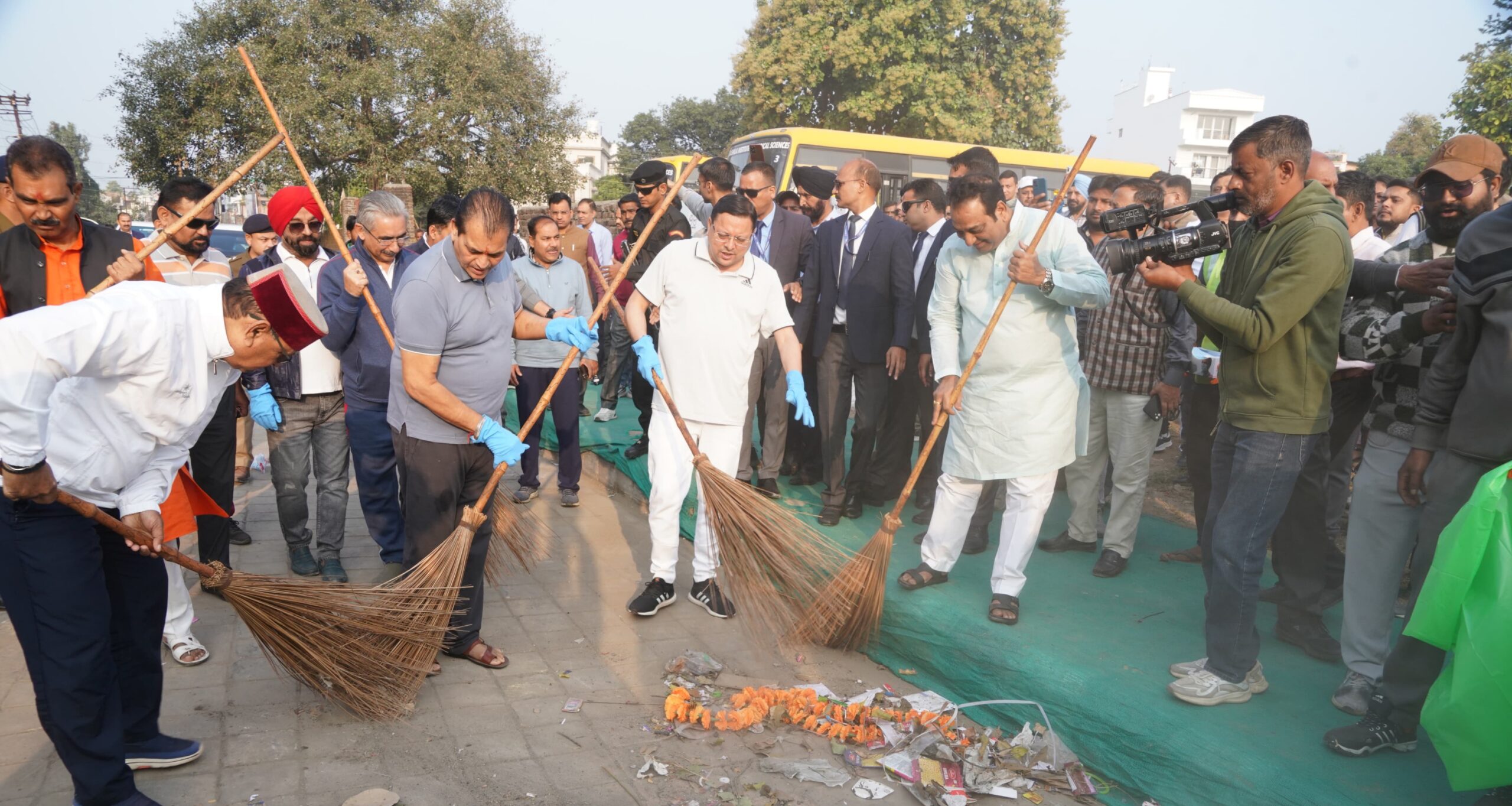 इस अवसर पर शहरी विकास मंत्री श्री प्रेमचंद अग्रवाल, विधायक श्री विनोद चमोली, श्री खजान दास, निवर्तमान मेयर श्री सुनील उनियाल गामा, सचिव शहरी विकास श्री नितेश झा, जिलाधिकारी देहरादून श्री सविन बंसल, उपाध्यक्ष एमडीडीए श्री बंशीधर तिवारी और नगर आयुक्त देहरादून श्री गौरव कुमार ने भी झाड़ू लगाकर स्वच्छता कार्यक्रम चलाया।