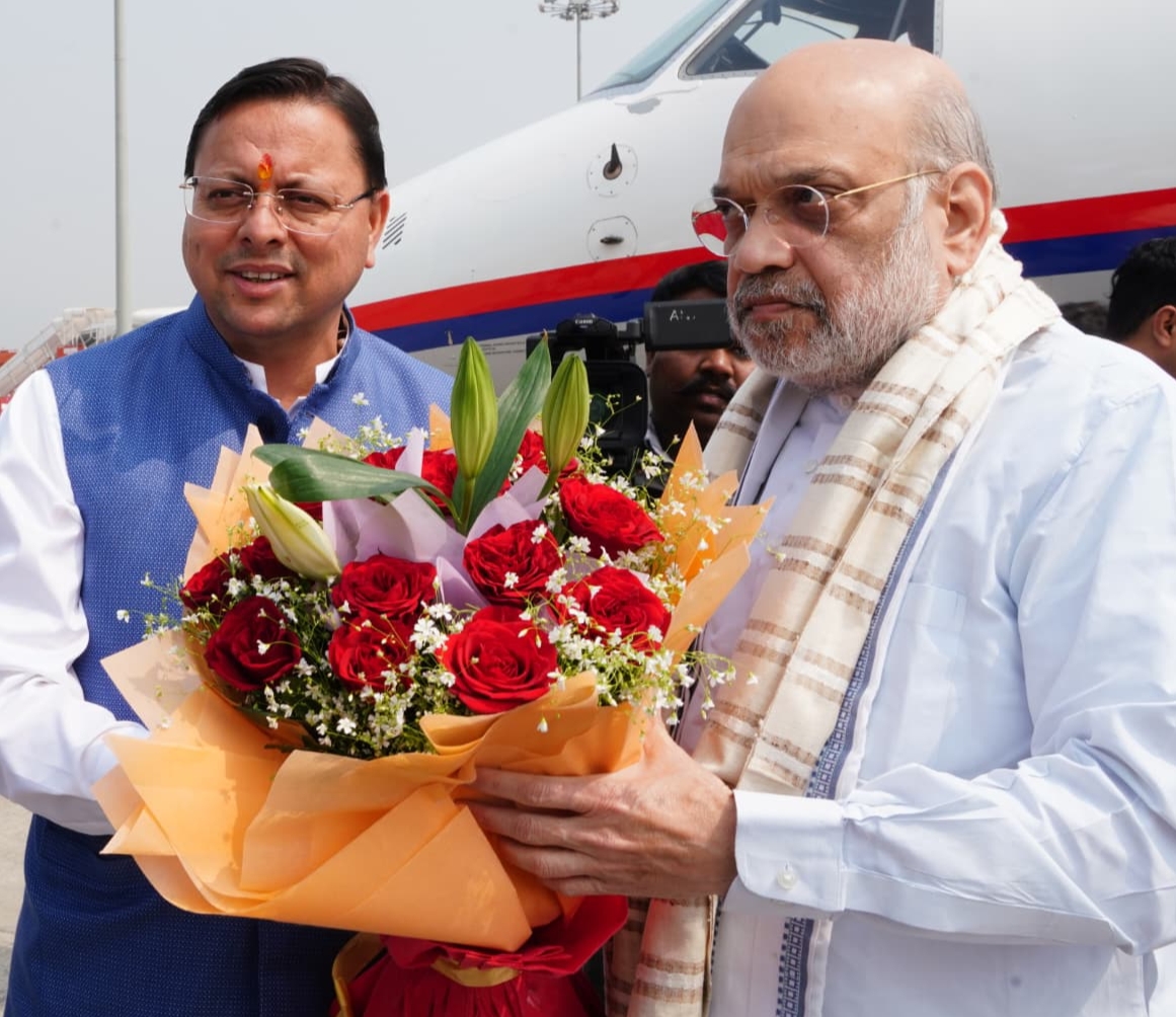 मुख्यमंत्री पुष्कर सिंह धामी ने किया जॉलीग्रांट एयरपोर्ट पर केंद्रीय गृह एवं सहकारिता मंत्री अमित शाह का स्वागत