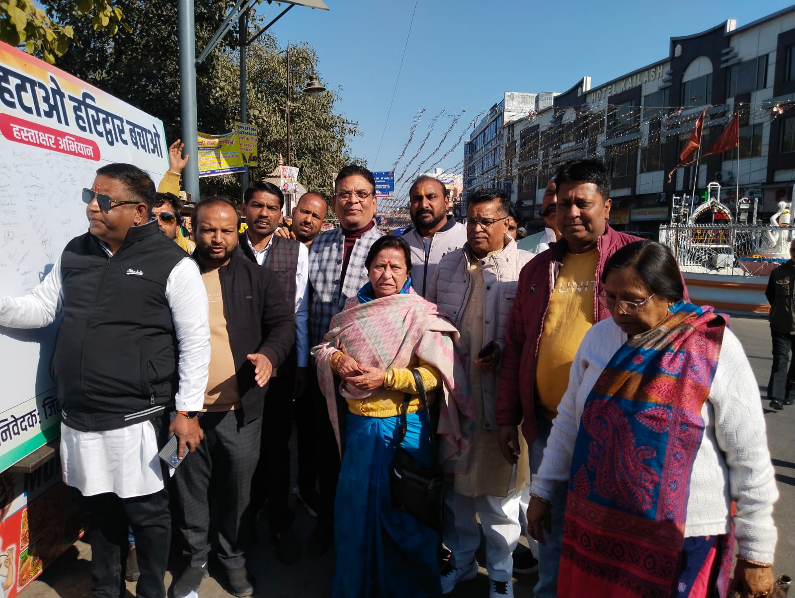 हरिद्वार, 13 दिसम्बर। महानगर कांग्रेस कमेटी द्वारा चलाए जा रहे कारिडोर हटाओ हरिद्वार बचाओ हस्ताक्षर अभियान के दूसरा चरण में शिवमूर्ति, रेलवे स्टेशन पर अभियान चलाया चलाया गयां जिसमें व्यापारियों व स्थानीय नागरिकों ने बढ़ चढ़कर हिस्सा लिया। इस दौरान महानगर कांग्रेस अध्यक्ष अमन गर्ग और वरिष्ठ नेता अरविंद शर्मा ने कहा कि कारिडोर योजना से हरिद्वार की पौराणिकता नष्ट हो जाएगी। जिसे हरिद्वार का व्यापारी व स्थानीय नागरिक किसी भी कीमत पर बर्दाश्त नहीं करेंगे। अरविंद शर्मा ने कहा कि विगत काफी वर्षां से मेट्रो ट्रेन, पांड टैक्सी के नाम पर लोगों को डराया जा रहा है। डीपीआर कहां है, यह किसी को नहीं पता है।