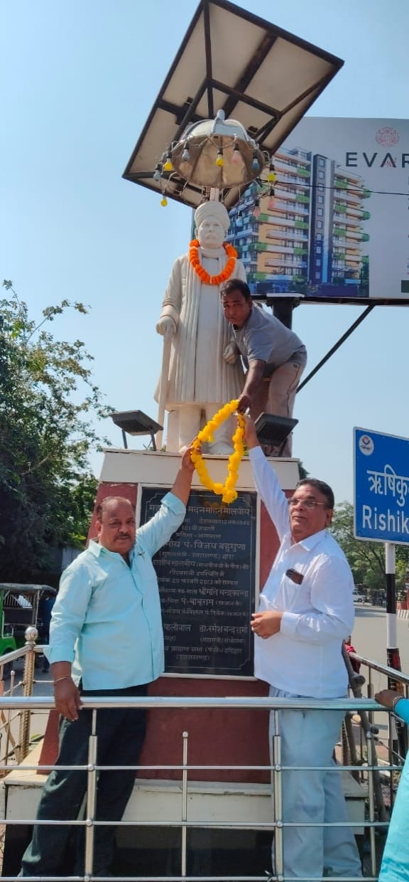 हरिद्वार, 19 अक्तूबर। वरिष्ठ कांग्रेस नेता पूर्व सभासद अशोक शर्मा, एडवोकेट अरविंद शर्म, उदित विद्याकुल, यश शर्मा व अन्नू ने ऋषिकुल तिराहे पर लगी पंडित मदन मोहन मालवीय की प्रतिमा व आसपास की सफाई कर स्वच्छता का संदेश दिया। साफ सफाई के बाद सभी ने पंडित मदन मोहन मालवीय की प्रतिमा पर पुष्पमाला अर्पित की और उनके दिखाए मार्ग पर चलते हुए समाजेसवा का संकल्प लिया। इस दौरान अशोक शर्मा व अरविंद शर्मा ने कहा कि महापुरूषों और वीर शहीदों की प्रतिमाओं की सफाई का विशेष ध्यान रखा जाना चाहिए। उन्होंने कहा कि दीपावली का अवसर है।