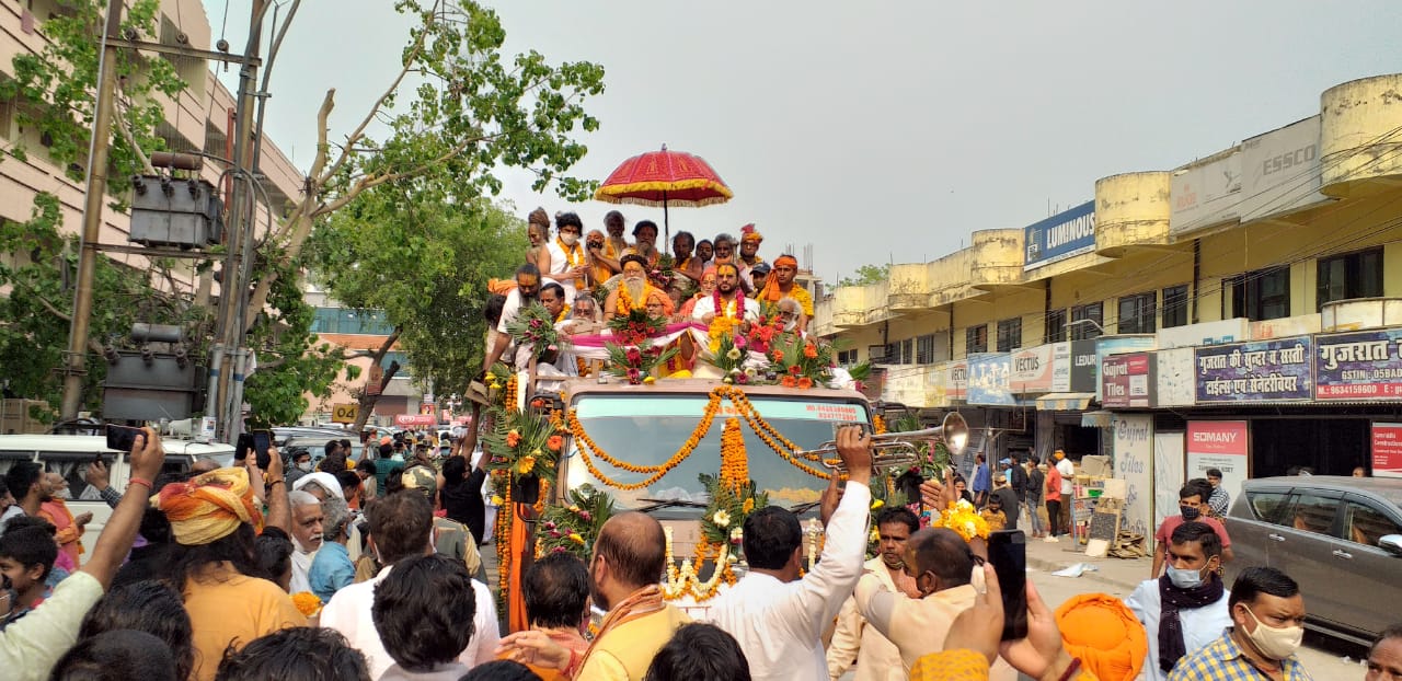 सामाजिक संगठनों व श्रद्धालुओं ने पुष्पवर्षा कर किया संतों का स्वागत