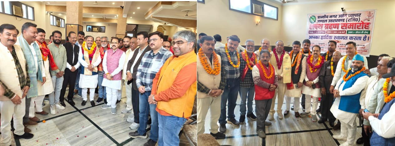 प्रशासन को भी व्यापारियों का सहयोग करते हुए उनकी समस्याओं का समाधान करना चाहिए। इस दौरान गंगोत्री रावल शिव प्रकाश, वरिष्ठ भाजपा नेता दर्जा मंत्री ओमप्रकाश जमदग्नि, शहर व्यापार मंडल अध्यक्ष प्रवीण शर्मा ने भी विचार रखे और नवगठित कार्यकारिणी को बधाई और शुभकामनाएं दी। हल्द्वानी से शपथ ग्रहण में शामिल होने पहुंचे राजीव अग्रवाल, वीरेंद्र गुप्ता, राजेंद्र, पूरनलाल शाह आदि का शिवकुमार कश्यप एवं मयंक मूर्ति भट्ट ने फूलमाला पहनाकर स्वागत किया। शहर इस अवसर पर वरिष्ठ व्यापारी नेता सुरेंद्र भटेजा, उदयराम सेमवाल, समाजसेवी जगदीश लाल पाहवा, पवन कृष्ण शास्त्री सहित बड़ी संख्या में व्यापारी मौजूद रहे। मंच संचालन विश्वास सक्सेना ने किया।