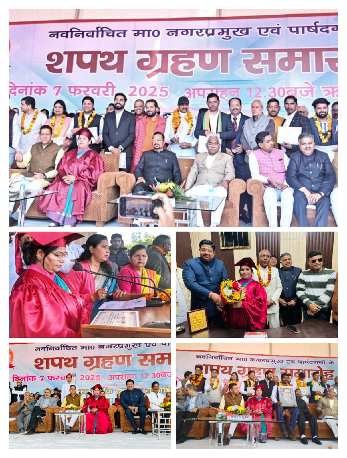 हरिद्वार, 7 फ़रवरी। शुक्रवार से शहर की सरकार अस्तित्व में आ गयी। ऋषिकुल मैदान में आयोजित शपथ ग्रहण समारोह में जिलाधिकारी कमेंद्र सिंह ने नवनिर्वाचित मेयर किरण जैसल को पद एवं गोपनीयता की शपथ दिलाई। शपथ लेने के बाद मेयर किरण जैसल ने सभी 60 पार्षदों को शपथ दिलायी।
