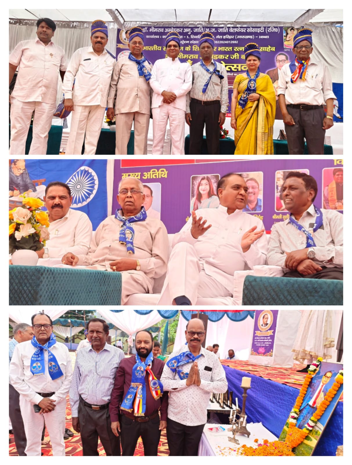 सोसाइटी के पदाधिकारियों अध्यक्ष भानपाल सिंह, महासचिव चंद्रपाल सिंह व कोषाध्यक्ष देवेंद्र भास्कर ने अतिथीयों का पगड़ी पहनाकर एवं शॉल ओढ़ाकर स्वागत किया। मुख्य अतिथी नेशनल एक्शन फोरम ऑफ सोशल जस्टिस के राष्ट्रीय अध्यक्ष नानकचंद्र विशिष्ठ अतिथी दिल्ली विवि की प्रोफेसर चंद्रकांता के माथुर ने कहा कि डा.भीमराव अंबेडकर स्त्री शिक्षा के बड़े पैरोकार थे। संविधान की रचना कर उन्होंने स्त्रीयों के लिए शिक्षा और तरक्की के द्वार खोले। उन्होंने कहा कि बाबा साहेब का मानना था कि शिक्षा ही प्रगति का द्वार है। इसलिए अपने बच्चों खासतौर पर बेटियों को शिक्षा के लिए प्रेरित करें। अध्यक्ष भानपाल सिंह एवं महासचिव चंद्रपाल सिंह ने सभी को अंबेडकर जन्मोत्सव की बधाई देते हुए कहा कि दलितों शोषितों पिछड़ों को न्याय दिलाने वाले बाबा साहेब के जीवन से प्रेरणा लें। समानता एवं न्याय के आदर्शो को स्थापित कर डा.अंबेडकर ने देश को मजबूती प्रदान करने का काम किया। इस अवसर पर पीएल कपिल, पूर्व सांसद ईसम सिंह, सुशीला, सत्यपाल, नाथीराम, सुखपाल, मंजीत, अशोक कटारिया, तीर्थपाल रवि, दर्शन लाल, राजवीर चौहान, भानपाल सिंह सहित बड़ी संख्या में लोग मौजूद रहे।