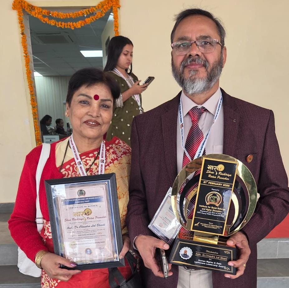 हरिद्वार, 22 फरवरी। सामाजिक सेवा और शिक्षा के क्षेत्र में योगदान देने पर डा.चंद्रलाल भारती को श्री राष्ट्रीय रत्न पुरस्कार से सम्मानित किया गया है। यह सम्मान उन्हें इंस्टीट्यूट फॉर सोशल रिफॉर्म्स एंड हायर एजुकेशन की ओर से देहरादून में आयोजित समारोह में प्रदान किया गया। कार्यक्रम में प्रदेश के वन मंत्री सुबोध उनियाल और कैंट विधायक सविता कपूर मुख्य रूप से उपस्थित रहे। समारोह में विभिन्न क्षेत्रों में उल्लेखनीय कार्य करने वाले अन्य व्यक्तियों को भी सम्मानित किया गया। जिनमें लोक निर्माण विभाग हरिद्वार में कार्यरत अपर सहायक अभियंता डा.चंद्रलाल भारती भी शामिल हैं।