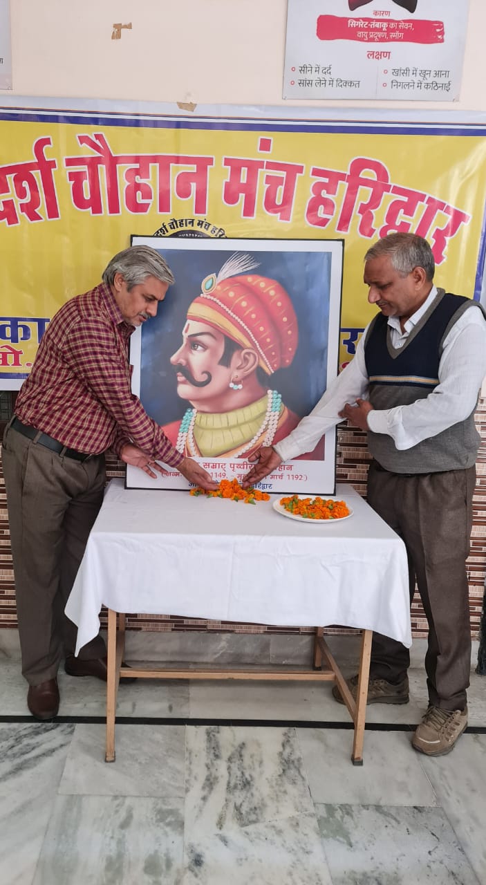 हरिद्वार, 11 मार्च। क्षत्रिय सम्राट पृथ्वीराज चौहान की 831वीं पुण्यतिथी पर आदर्श चौहान मंच शिव विहार आर्य नगर ज्वालापुर में कार्यक्रम का आयोजन कर श्रद्धापूर्वक उन्हें नमन किया। इस अवसर पर आदर्श चौहान मंच के अध्यक्ष डा.केपीएस चौहान ने कहा कि क्षत्रिय समाज का गौरव सम्राट पृथ्वीराज चौहान महान योद्धा थे। सम्राट पृथ्वीराज चौहान शब्दभेदी बाण चलाने की माहिर थे।