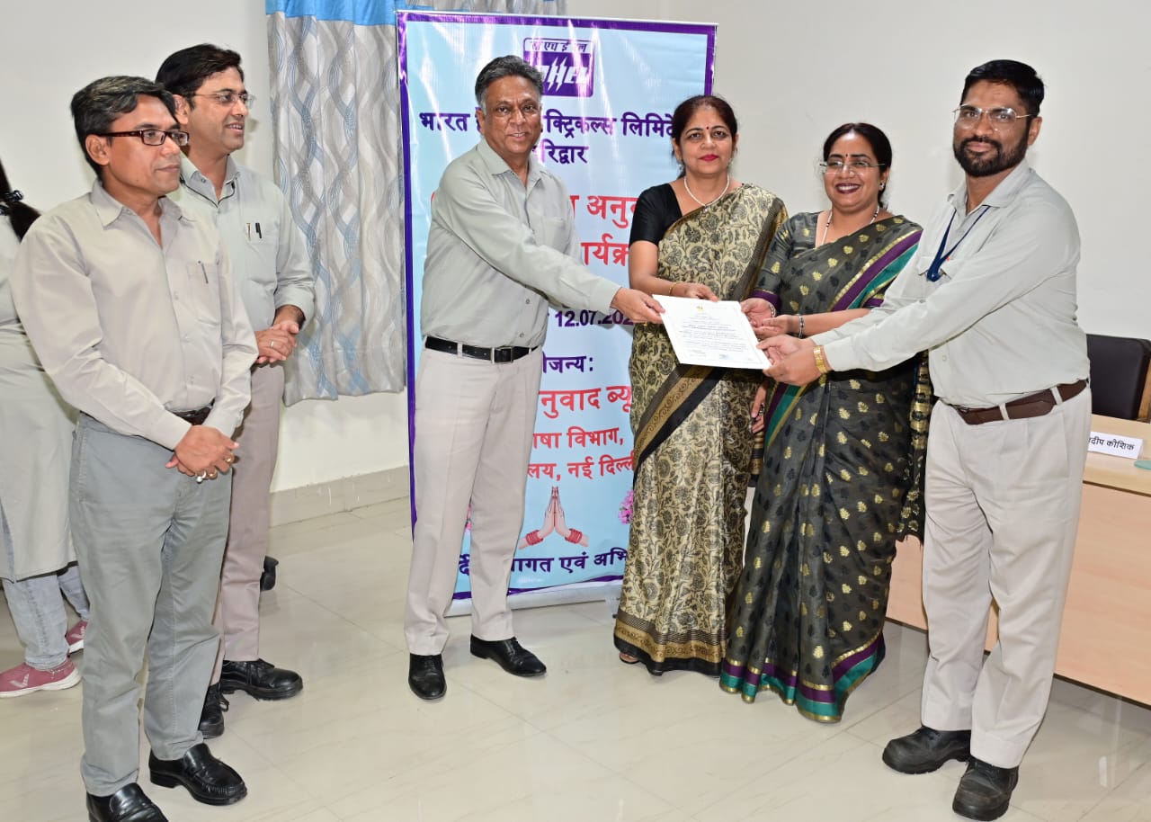 हरिद्वार, 12 जुलाई। केंद्रीय अनुवाद ब्यूरो राजभाषा विभाग नई दिल्ली के सौजन्य से बीएचईएल में आयोजित अनुवाद प्रशिक्षण कार्यक्रम का शुक्रवार को समापन हो गया। 8 जुलाई से 12 जुलाई तक मानव संसाधन विकास केंद्र में आयोजित पांच दिवसीय प्रशिक्षण कार्यक्रम में 31 कर्मचारियों ने भाग लिया तथा अंग्रेजी से हिंदी अनुवाद के गुर सीखे। कार्यक्रम के समापन पर महाप्रबंधक (एमएम, पीपीएक्स-बीओआई) संजीव कुमार गुप्ता ने प्रतिभागियों को प्रमाण-पत्र प्रदान किए। इस अवसर पर संजीव कुमार गुप्ता ने सभी को, सरकारी कार्य हिंदी में करने के लिए प्रेरित किया।