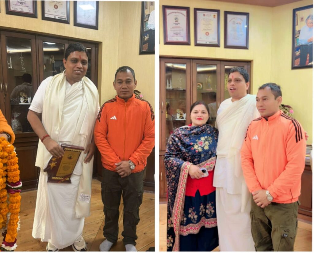 हरिद्वार, 30 दिसम्बर। आयुर्वेद, योग और भारतीय संस्कृति के क्षेत्र में पतंजलि योगपीठ के महामंत्री आचार्य बालकृष्ण केे महत्वपूर्ण योगदान के लिए गौर्खाली महिला कल्याण समिति ने उन्हंे सम्मानित किया है। समिति द्वारा 28 दिसम्बर को बैरागी कैंप में आयोजित वनभोज एवं सांस्कृतिक महोत्सव में आचार्य बालकृष्ण को मुख्य अतिथी के तौर पर आमंत्रित किया गया था। व्यस्तता के चलते आचार्य बालकृष्ण कार्यक्रम में शामिल नही हो पाए थे। समिति की पदाधिकारियों ने मंगलवार को आचार्य बालकृष्ण से भेंट की और उन्हंे सम्मानित किया।