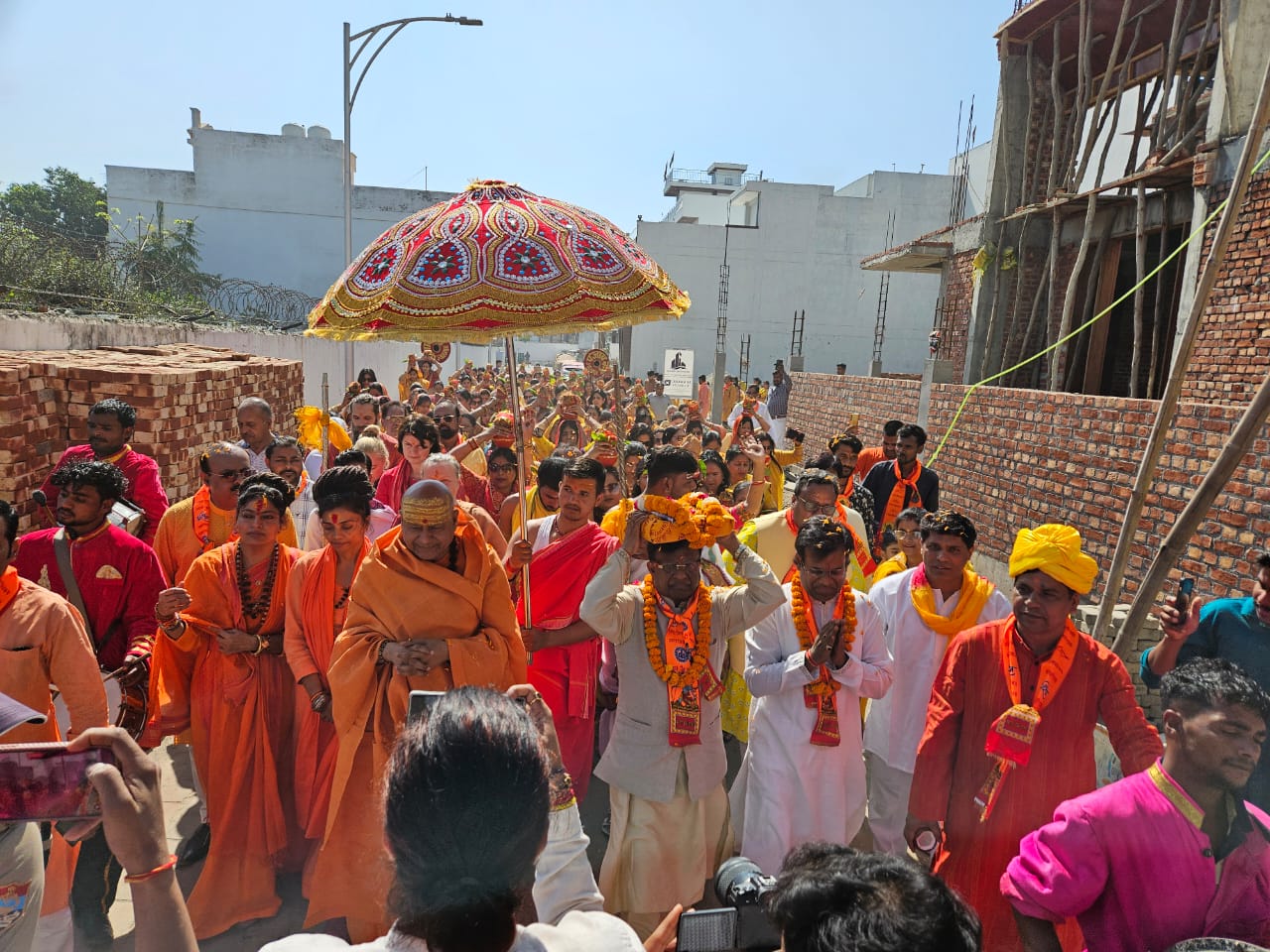हरिद्वार, 1 अप्रैल। जुर्स कंट्री में आयोजित किए जा रहे श्रीराम मंदिर प्राण प्रतिष्ठा महोत्सव एवं श्रीराम जन्म कथा के उपलक्ष्य में मंगलवार को महामंडलेश्वर स्वामी यतींद्रानंद गिरि महाराज के नेतृत्व में भव्य कलश यात्रा का आयोजन किया गया। गंगा तट से कथा स्थल श्रीराम मंदिर तक निकाली गयी भव्य कलश यात्रा का उद्घाटन पायलट बाबा आश्रम पीठाधीश्वर महामंडलेश्वर चेतन माता एवं महामंडलेश्वर श्रद्धा माता ने किया। कलश यात्रा में सैकड़ो की संख्या में पुरुष व महिला श्रद्धालुओं ने भाग लिया। श्रीराम मंदिर प्राण प्रतिष्ठा महोत्सव एवं श्रीराम जन्म कथा के मुख्य यजमान यूसी जैन ने कहा कि श्रीराम मंदिर का निर्माण अयोध्या की तर्ज पर किया जा रहा है।