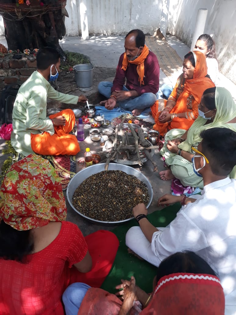 ऐसे में सभी को अधिक से अधिक धार्मिक अनुष्ठान कर भगवान से महामारी का प्रकोप शांत करने के लिए प्रार्थना करनी चाहिए। उन्होंने कहा कि सच्चे मन से की गयी प्रार्थना ईश्वर अवश्य सुनते हैं। शिवसेना के संरक्षक व पूर्व जिला प्रमुख विशाल शर्मा ने कहा जब जब देश पर आपदा आयी है ईश्वर की कृपा से ही उसका शमन हुआ है। उन्होंने कहा कि सभी को कोविड दिशा निर्देशों का पालन करते हुए महामारी से स्वयं को अपने परिवार को बचाना चाहिए। कोरोना की दूसरी लहर में जिस प्रकार आॅक्सीजन की कमी सामने आयी है। उसे देखते हुए सभी को अधिक से अधिक पौधारोपण करना चाहिए। पौधारोपण करने के साथ वृक्ष बनने तक उसकी देखभाल भी करें। ताकि प्राणवायु आॅक्सीजन मिले और मानव जीवन खुशहाल बने।