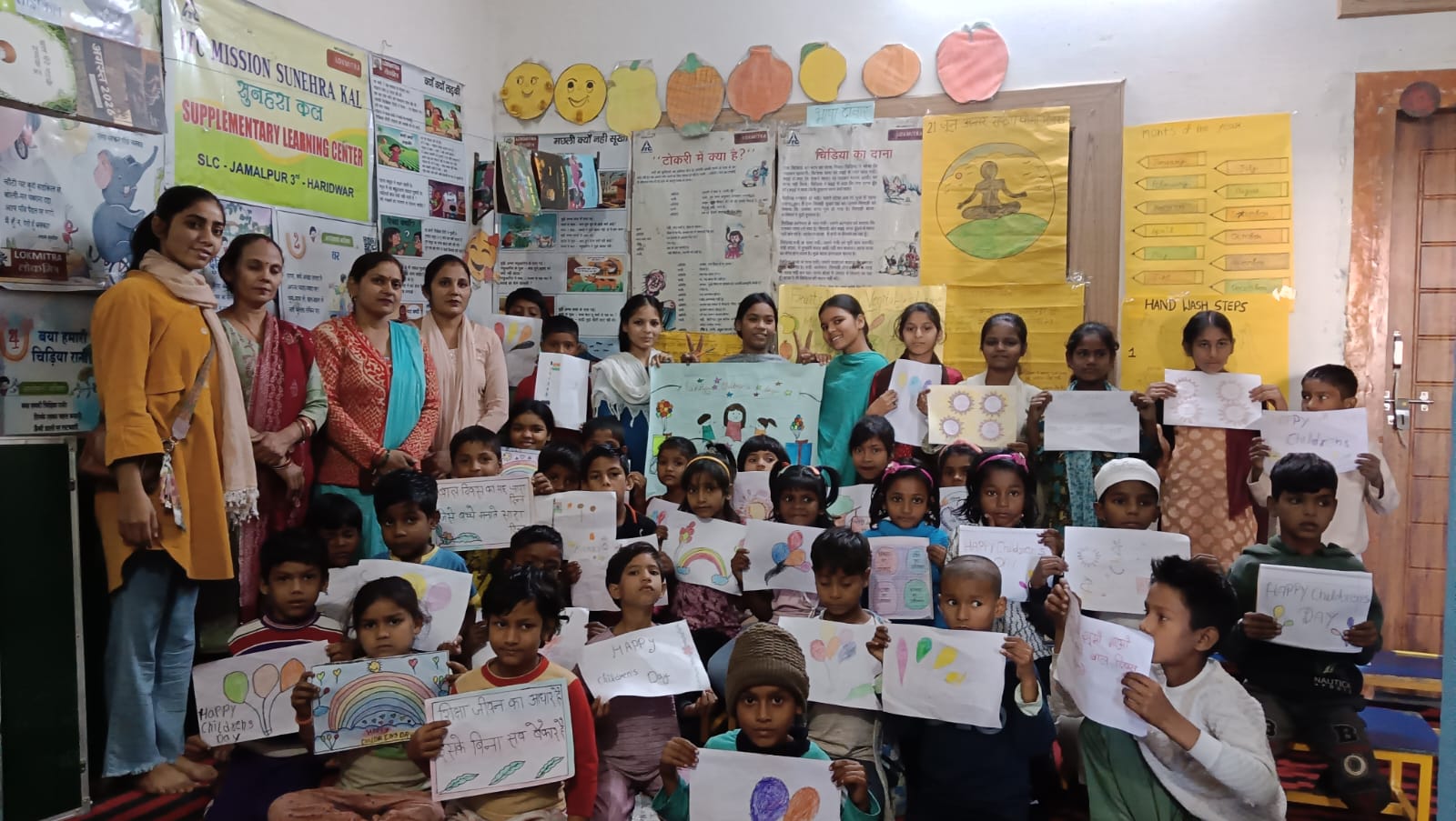 हरिद्वार, 14 नवम्बर। आईटीसी मिशन सुनहरा कल शिक्षा कार्यक्रम के तहत लोकमित्र संस्था द्वारा एसएलसी केंद्रों पर बाल अधिकार दिवस का आयोजन किया गया। जिसमें बच्चों को बाल अधिकार की जानकारी दी गई। इस दौरान बच्चों की कला प्रतियोगिता का आयोजन भी किया गया। जिसमें 70 बच्चों ने प्रतिभाग किया।