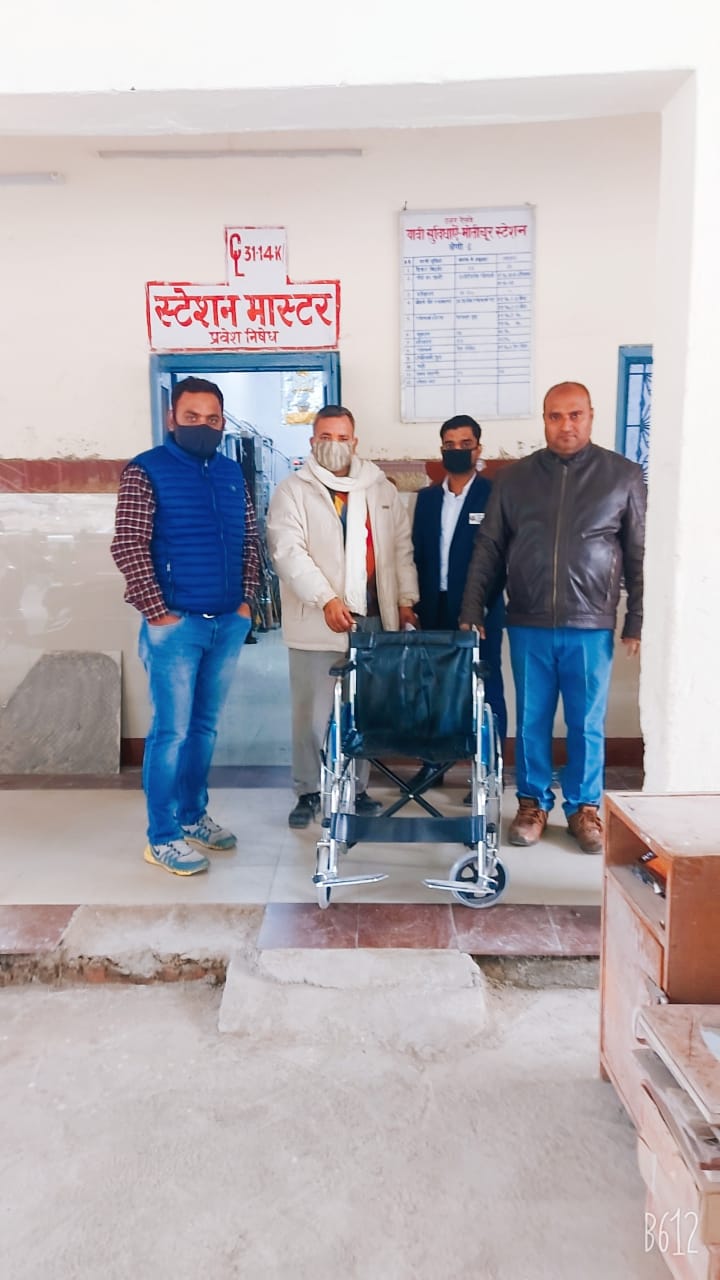 हरिद्वार, 15 जनवरी। तीर्थनगरी हरिद्वार मंे समाजसेवा के क्षेत्र में विशिष्ट कार्य करने वाली भूपतवाला स्थित महाराजा अग्रसेन सेवा सदन ट्रस्ट की ओर से मानवीय कार्य करते हुए मोतीचूर रेलवे स्टेशन को व्हील चेयर भेंट की। भूपतवाला स्थित महाराजा अग्रसेन सेवा सदन के प्रबंधक रवि प्रकाश मिश्रा ने जानकारी देते हुए बताया कि रेलवे स्टेशन पर दिव्यांगजनांे और वृद्धजनों को आने-जाने में बहुत कष्ट होता था उनकी दिक्कतों को दूर करने के उद्देश्य से हमारी संस्था ने स्टेशन मास्टर मोतीचूर को एक व्हील चेयर भेंट की साथ ही उन्हें हर प्रकार की मदद का आश्वासन भी दिया।