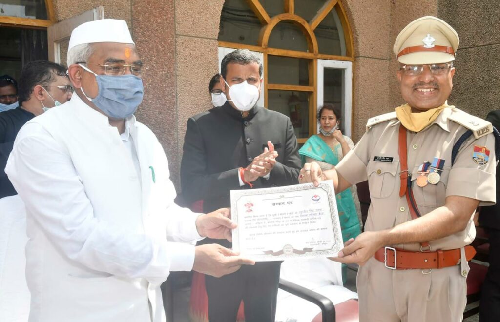 इस अवसर पर कैबिनेट मंत्री द्वारा कोरोना संक्रमण के उपचार के बाद स्वस्थ हुए लोगों को माला पहना कर तथा पुष्प भेंट कर सम्मानित किया गया। साथ ही कोरोना के दौरान अपनी विशिष्ट सेवायें देने वाले कोरोना योद्धाओं (प्रशासन तथा पुलिस) को भी प्रशस्ति पत्र देकर सम्मानित किया गया।
