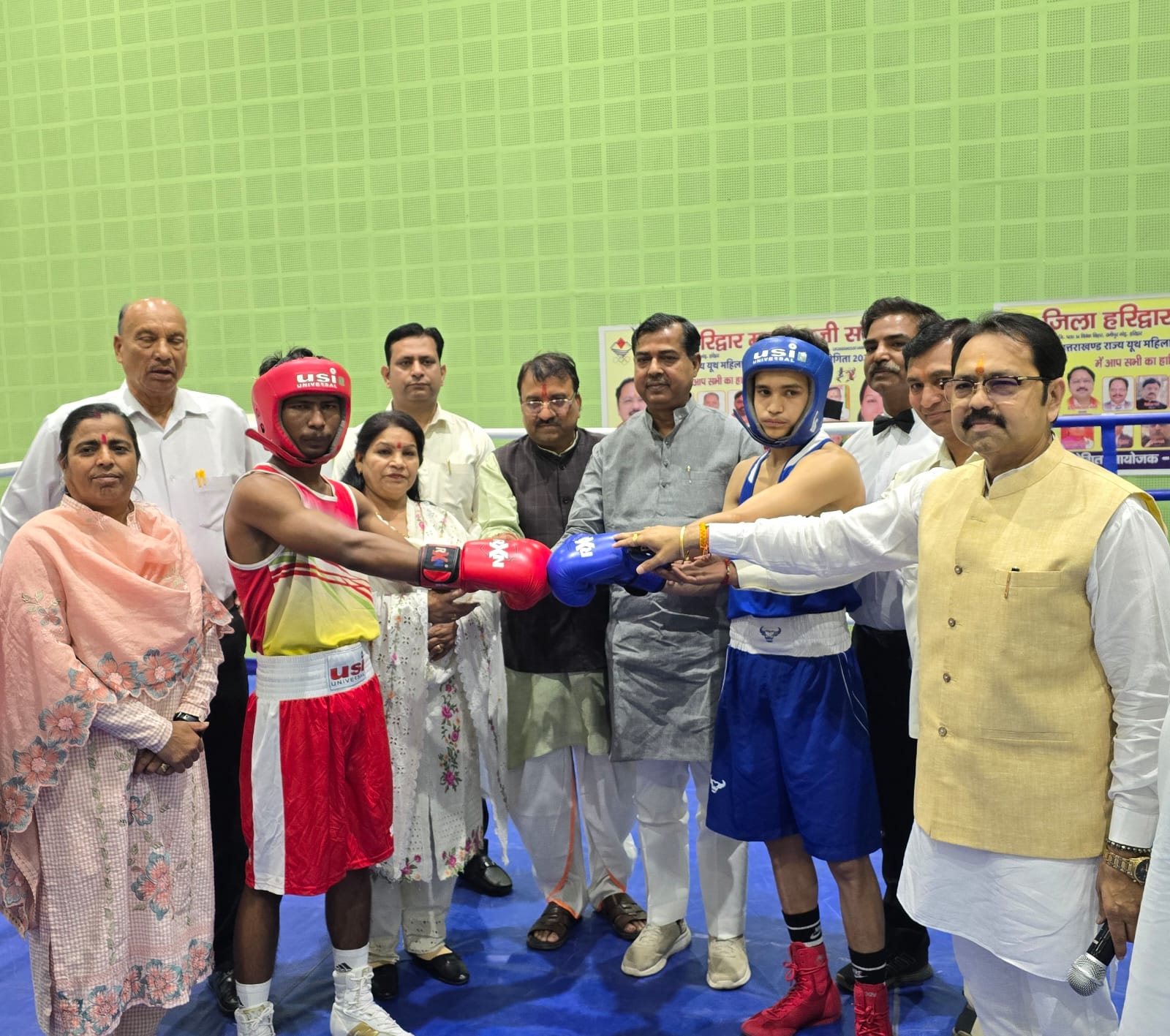 हरिद्वार, 3 अप्रैल। रोशनाबाद स्थित योग स्थली स्पोर्टस स्टेडिम में आयोजित राज्य स्तरीय यूथ बॉक्सिंग प्रतियोगिता का शुभारंभ रानीपुर विधायक आदेश चौहान व मेयर किरण जैसल ने किया। बालक एवं बालिका वर्ग में आयोजित तीन दिवसीय प्रतियोगिता में प्रदेश के 10 जिलों व 10 स्पोर्टस कालेज की टीमों के 154 खिलाड़ी प्रतिभाग कर रहे हैं। जिनमें 97 बालक एवं 57 बालिकाएं शामिल हैं। प्रतियोगिता का उद्घाटन मैच स्पोर्ट्स कालेज पिथौरागढ़ एवं साईं ट्रेनिंग काशीपुर के बीच खेला गया।