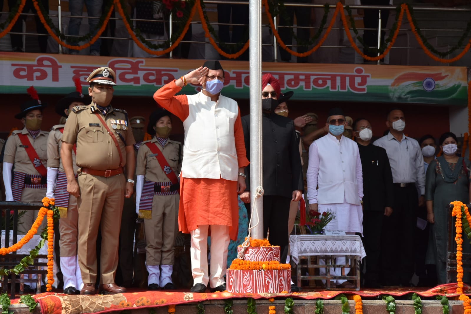मुख्यमंत्री पुष्कर सिंह धामी ने 75 वें स्वतंत्रता दिवस पर पुलिस लाईन में आयोजित मुख्य कार्यक्रम में ध्वजारोहण किया। मुख्यमंत्री ने स्वतंत्रता सेनानियों, सैन्य और अर्धसैन्य बलों के जवानों को नमन करते हुए उत्तराखण्ड राज्य निर्माण के सभी अमर शहीदों और आंदोलनकारियों को भी श्रद्धापूर्वक नमन किया। मुख्यमंत्री ने कहा कि आज हम जिस खुली हवा में सांस ले रहे हैं, वह महान स्वतंत्रता सेनानियों के त्याग एवं बलिदान का प्रतिफल है। इसी त्याग एवं बलिदान के प्रति  कृतज्ञता व्यक्त करने और देश को एक नये संकल्प के साथ आगे बढ़ाने के उद्देश्य से माननीय प्रधानमंत्री नरेन्द्र मोदी ने स्वतंत्रता के अमृत महोत्सव का आह्वान किया है। हम सभी 130 करोड़ भारतवासियों को अपना हाथ बढ़ाना होगा, तभी स्वतंत्रता के अमृत महोत्सव का उद्देश्य पूर्ण होगा।