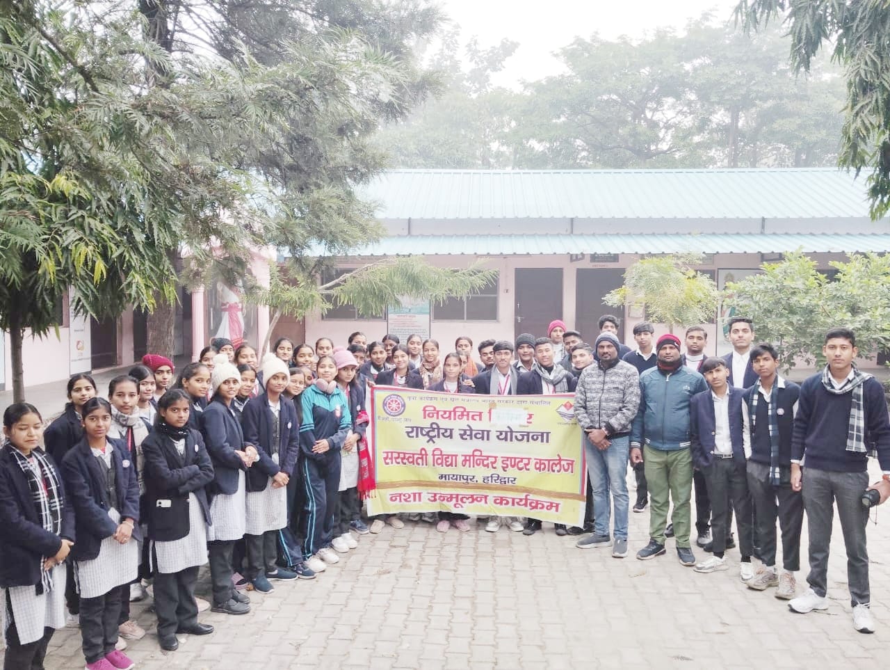 हरिद्वार, 3 जनवरी। चंडीघाट स्थित दिव्य प्रेम सेवा मिशन में आयोजित सरस्वती विद्या मंदिर कालेज मायापुर की राष्ट्रीय सेवा योजना इकाई के सात दिवसीय विशेष शिविर के दूसरे दिन शिविरार्थी एनएसएस स्वयंसेवियों ने नशा उन्मूलन रैली निकाली। स्वयंसेवियों ने रैली और नुक्कड़ नाटक के माध्यम से आसपास के लोगों को नशे के दुष्परिणामों एवं भविष्य में नशा न करने के प्रति जागरूक किया।