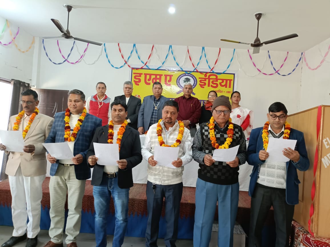 हरिद्वार, 8 फरवरी। इएमए हरिद्वार की नव निर्वाचित जिला कार्यकारिणी का शपथ ग्रहण समारोह आयोजित किया गया। इएमए कैम्प कार्यालय बालाजी इंस्टीट्यूट आफ अल्टरनेटिव मेडिकल साइंस एंड रिसर्च सेंटर के सभागार में आयोजित शपथ ग्रहण समारोह का शुभारम्भ एडीजीसी जिला सत्र न्यायालय हरिद्वार एडवोकेट कुशलपाल सिंह चौहान, एसोसिएशन के राष्ट्रीय अध्यक्ष डा.केपीएस चौहान, राष्ट्रीय महासचिव डा.एनएस टाकुली, राष्ट्रीय कोषाध्यक्ष डा.वीएल अलखानिया ने संयुक्त रुप से दीप प्रज्वलित कर किया।