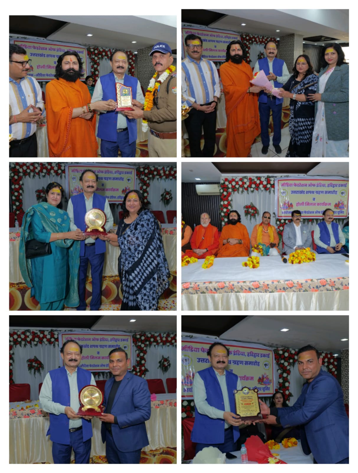 हरिद्वार: मीडिया जगत को संगठित और सशक्त बनाने के उद्देश्य से मीडिया फेडरेशन ऑफ इंडिया की हरिद्वार इकाई उत्तराखंड का भव्य शपथ ग्रहण समारोह व होली मिलन कार्यक्रम ज्वालापुर स्थित होटल ग्रैंड शिवा में हर्षोल्लास के साथ आयोजित किया गया। कार्यक्रम में मुख्य अतिथि के रूप में फेडरेशन के राष्ट्रीय अध्यक्ष अरुण शर्मा की गरिमामयी उपस्थिति रही।