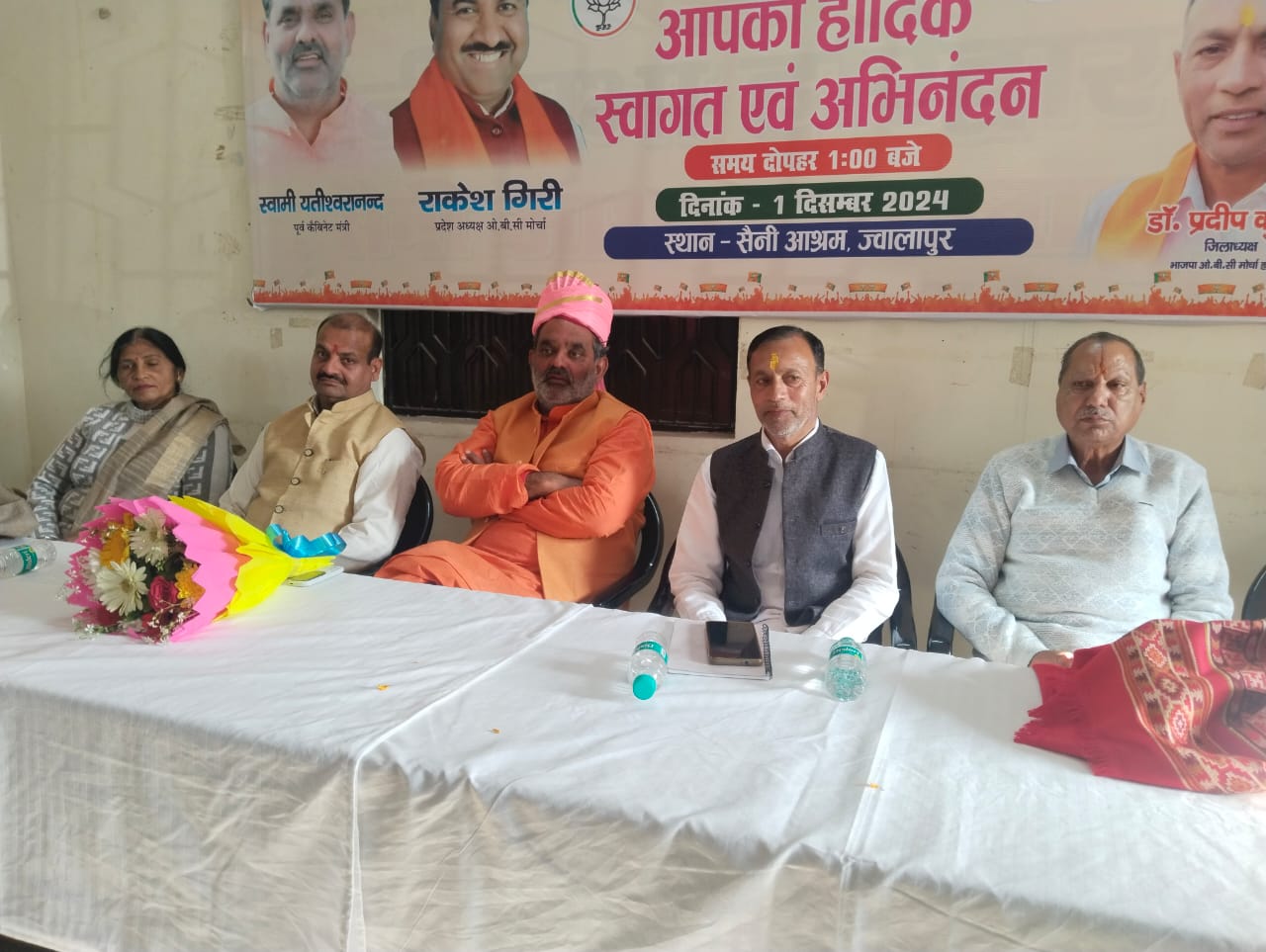 हरिद्वार, 1 दिसम्बर। ओबीसी समाज की बैठक नगर निगम से मेयर पद की मांग को लेकर सैनी आश्रम में आयोजित की गई। ओबीसी समाज की विभिन्न बिरादरीयों के प्रतिनिधियों ने सरकार से हरिद्वार नगर निगम मेयर पद को ओबीसी वर्ग को देने की जोरदार मांग की। बैठक में मुख्य अतिथि के रूप में शामिल हुए पूर्व कैबिनेट मंत्री स्वामी यतीश्वरानंद ने कहा कि लोकतंत्र में सबको राजनीति में पद मांगने का अधिकार है। ओबीसी समाज भी अपने लोगों को प्रतिनिधित्व देने की मांग कर रहा है। यह उनका अधिकार है उन्होंने बोलते हुए कहा कि हरिद्वार नगर निगम के चुनाव में किसी भी व्यक्ति बिरादरी या समाज को मेयर का प्रत्याशी बनाया जाए सभी ने भारतीय जनता पार्टी द्वारा चुने गए व्यक्ति को ही समर्थन देना है।