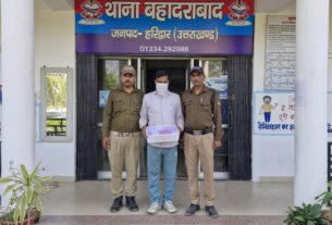 हरिद्वार, 20 जनवरी। थाना बुग्गावाला पुलिस ने एक चरस तस्कर को 1 किलो 10 ग्राम चरस समेत गिरफ्तार किया है। बरामद चरस की कीमत एक लाख रूपए बतायी जा रही है। बीती रात चेकिंग में जुटी थाना पुलिस ने बाईक सवार एक युवक की तलाशी ली तो उसके कब्जे से भारी मात्रा में चरस बरामद हुई। पूछताछ में आरोपी ने बताया कि वह फुटकर में चरस बेचने का धंघा करता है। आरोपी के खिलाफ एनडीपीएस एक्ट के तहत केस दर्ज किया गया है। तस्करी में प्रयुक्त बाईक को पुलिस ने कब्जे में ले लिया है। पुलिस टीम में अमानतगढ़ चैकी प्रभारी एसआई समीप पाण्डेय, एसआई बुद्धि सिंह पंवार, हेडकांस्टेबल कुलवीर सिंह, कांस्टेबल राजदीप, कांस्टेबल चालक अमित सेमवाल शामिल रहे।