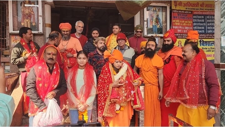 हरिद्वार, 16 दिसम्बर। भारत को हिंदू राष्ट्र घोषित करने और गौमाता को राष्ट्रमाता का दर्जा दिए जाने के लिए अभियान चला रही देशभक्त गायिका कवि सिंह ने मंगलवार को हरकी पैड़ी पर गंगा स्नान और दुग्धाभिषेक एवं मायादेवी मंदिर मे पूजा अर्चना कर अपनी पदयात्रा का दूसरा चरण शुरू किया। इस दौरान उनके साथ श्री अखंड परशुराम अखाड़े के अध्यक्ष पंडित अधीर कौशिक सहित कई लोग मौजूद रहे। संत समाज ने भी उन्हें अपना आशीर्वाद प्रदान किया। गायिका कवि सिंह ने कहा कि भारत को हिंदू राष्ट्र बनाने और गौमाता को राष्ट्रमाता का दर्जा दिलाने के लिए हिंदुओं को आगे आना होगा।
