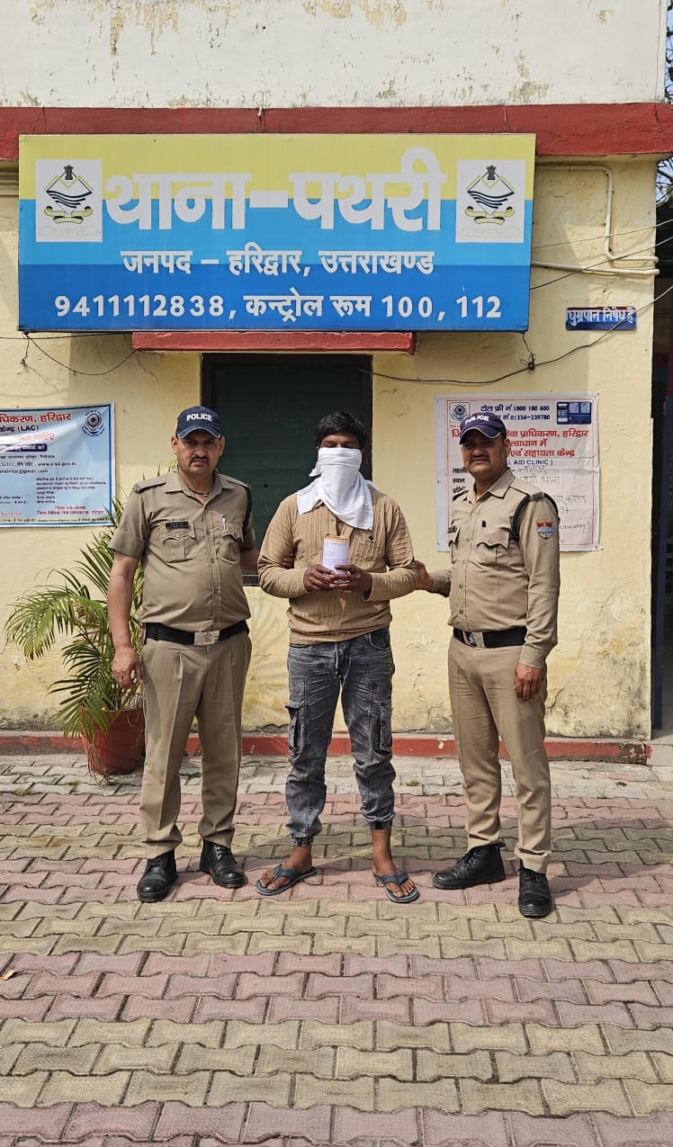 हरिद्वार, 23 मार्च। थाना पथरी पुलिस ने स्मैक समेत एक नशा तस्कर को गिरफ्तार किया है। आरोपी के कब्जे से 8.35 ग्राम स्मैक बरामद हुई है। पुलिस ने आरोपी के खिलाफ एनडीपीएस एक्ट में मुकद्मा दर्ज कर उसे कोर्ट में पेश किया। जहां से उसे जेल भेज दिया गया। इसके साथ ही पुलिस आरोपी के कब्जे से मिली स्मैक का स्रोत पता लगाने में जुट गयी है। एसएसपी नवनीत सिंह भुल्लर ने नशा तस्करों के खिलाफ सख्त कार्रवाई के निर्देश दिए हैं।