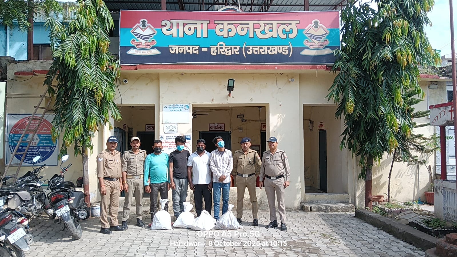 हरिद्वार, 8 अक्तूबर। थाना कनखल पुलिस ने चार शराब तस्करों को गिरफ्तार किया है। आरोपियों के कब्जे से अंग्रेजी व देशी शराब के पव्वे बरामद हुए हैं। नशा मुक्त देवभूमि अभियान के तहत अवैध रूप से शराब का धंधा करने वालों की धरपकड़ के लिए गठित पुलिस टीमों ने अलग-अलग स्थानो से 4 आरोपियों को अबैध शराब के साथ दबोच लिया। गिरफ्तार आरोपियों कुनाल पुत्र बिरेन्द्र कुमार निवासी मौ.खतना इसाइयो की पुलिया अमर उजाला रोड थाना कालाबाडी जिला बरेली उ.प्र. हाल निवासी एसएमजेएन कालेज के पास गोविन्दपुरी हरिद्वार के कब्जे से देशी शराब के 50 टैट्रा पैक, अंकित पुत्र मामचन्द निवासी कमल बस्ती बजरीवाला बैरागी कैम्प कनखल के कब्जे से अंग्रेजी शराब के 35 पव्वे, रोहित पुत्र राजकुमार निवासी कामगारपुर थाना मण्डावली जिला बिजनौर यूपी हाल निवासी पीठ पुलिया जगजीतपुर के कब्जे अंग्रेजी शराब के 49 पव्वे व अभिषेक शर्मा पुत्र दिवेश शर्मा निवासी राजीव नगर गोविन्दपुरी हरिद्वार के कब्जे से अंग्रेजी शराब के 30 पव्वे बरामद हुए हैं। आरोपियों के खिलाफ आबकारी अधिनियम के तहत मुकद्मा दर्ज किया गया है। पुलिस टीम में अपर उपनिरीक्षक ललित मोहन अधिकारी, कांस्टेबल प्रलव चौहान, अरविन्द नौटियाल, पंकज चौहान, जितेन्द्र राणा शामिल रहे।