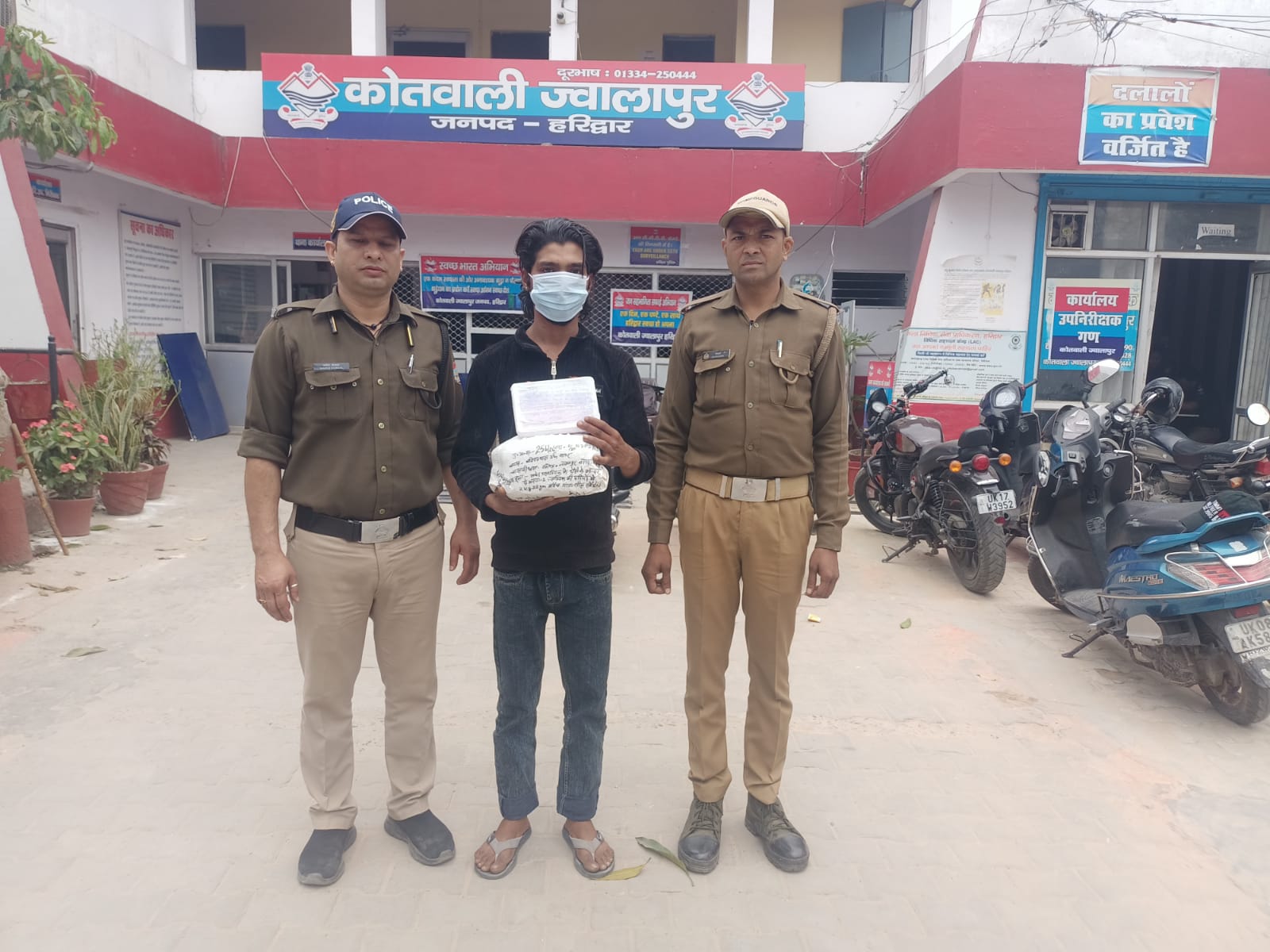 हरिद्वार, 14 मार्च। ज्वालापुर कोतवाली पुलिस ने गांजे समेत एक आरोपी को गिरफ्तार किया है। आरोपित के कब्जे से 2 किलो 35 ग्राम गांजा और मोबाइल फोन बरामद किया गया है। एसएसपी के निर्देश पर नशा तस्करों के खिलाफ चलाए जा रहे अभियान के तहत कोतवाली प्रभारी द्वारा अलग-अलग टीमों का गठन किया गया है।