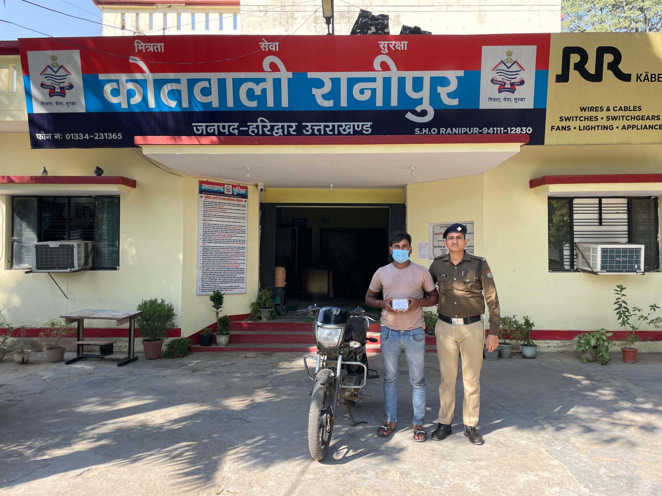 हरिद्वार, 16 नवम्बर। महिला को सम्मोहित कर जेवरात, पर्स व मोबाइल फोन ठगने वाले गिरोह का पर्दाफाश करते हुए रानीपुर कोतवाली पुलिस ने एक आरोपी को गिरफ्तार किया है। पुलिस ने आरोपी के कब्जे से दो कंगन व घटना में प्रयुक्त बाइक बरामद की है। 11 नवम्बर को शिवालिक नगर निवासी आशुतोष सोनी पुत्र मदनलाल ने पुलिस को तहरीर देकर चार अज्ञात व्यक्तियों द्वारा उनकी माता सुमित्रा सोनी को सम्मोहित कर सोने के कंगन, चेन, कान के टॉप्स, पर्स व मोबाइल फोन ठग ले जाने के संबंध मे मुकद्मा दर्ज कराया था।