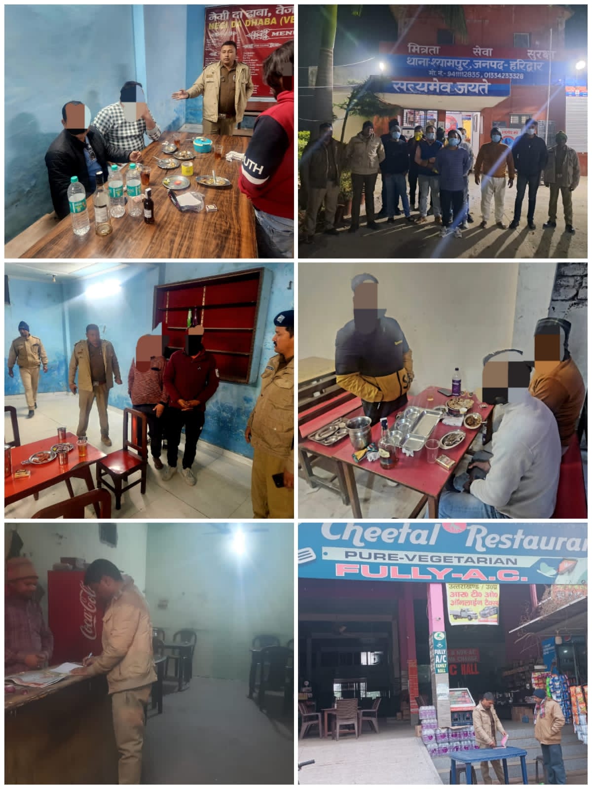 सड़क किनारे सार्वजनिक स्थल पर शराब पीकर शोरगुल कर माहौल बिगाड़ने वालो को सुधार करने के लिए व नए साल में सुरक्षा के तहत एसएसपी के निर्देश पर थानाध्यक्ष श्यामपुर के नेतृत्व में चौकी लालढांग, और चंडी घाट क्षेत्रांतर्गत कांगड़ी मुख्य हाईवे पर स्थित होटल ढाबे, शराब के ठेके के आसपास, चिडियापुर में ढाबों के पास सड़क किनारे खुले में शराब पीने वाले 28 को दबोचा गया।
