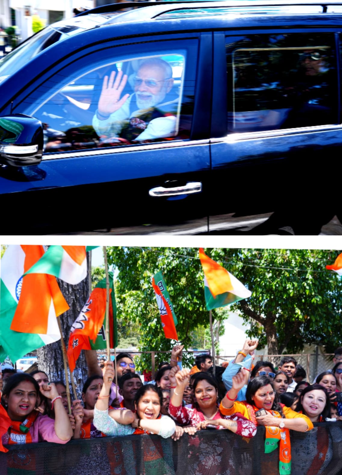 प्रधानमंत्री नरेंद्र मोदी ने भी हाथ जोड़कर और हाथ हिलाकर लोगों का अभिवादन स्वीकार किया। जनता के इस अपार प्रेम और समर्थन से वे बेहद प्रसन्न और उत्साहित दिखाई दिए।