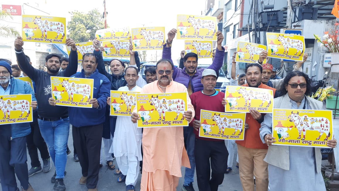 हरिद्वार, 10 मार्च। गाय को राष्ट्र्माता का दर्जा देने की मांग को लेकर श्री अखण्ड परशुराम अखाड़े के अध्यक्ष पंडित अधीर कौशिक के नेतृत्व में जन जागरूकता रैली निकाली गयी। इस दौरान पंडित अधीर कौशिक ने कहा कि हिंदू समाज की भावनाओं का सम्मान करते हुए केंद्र सरकार गौमाता को राष्ट्रमाता का दर्जा दे। गौवध रोकने के लिए कड़ा कानून बनाया जाए। पंडित अधीर कौशिक ने कहा कि गौवध रोकने के लिए बना वर्तमान कानून बेहद लचीला है। जिससे गौवंश के वध पर पूरी तरह रोक नहीं लग पा रही है। गौहत्या रोकने के लिए गौमाता को राष्ट्रमाता का दर्जा दिया जाए और ऐसा कानून बनाया जाए।