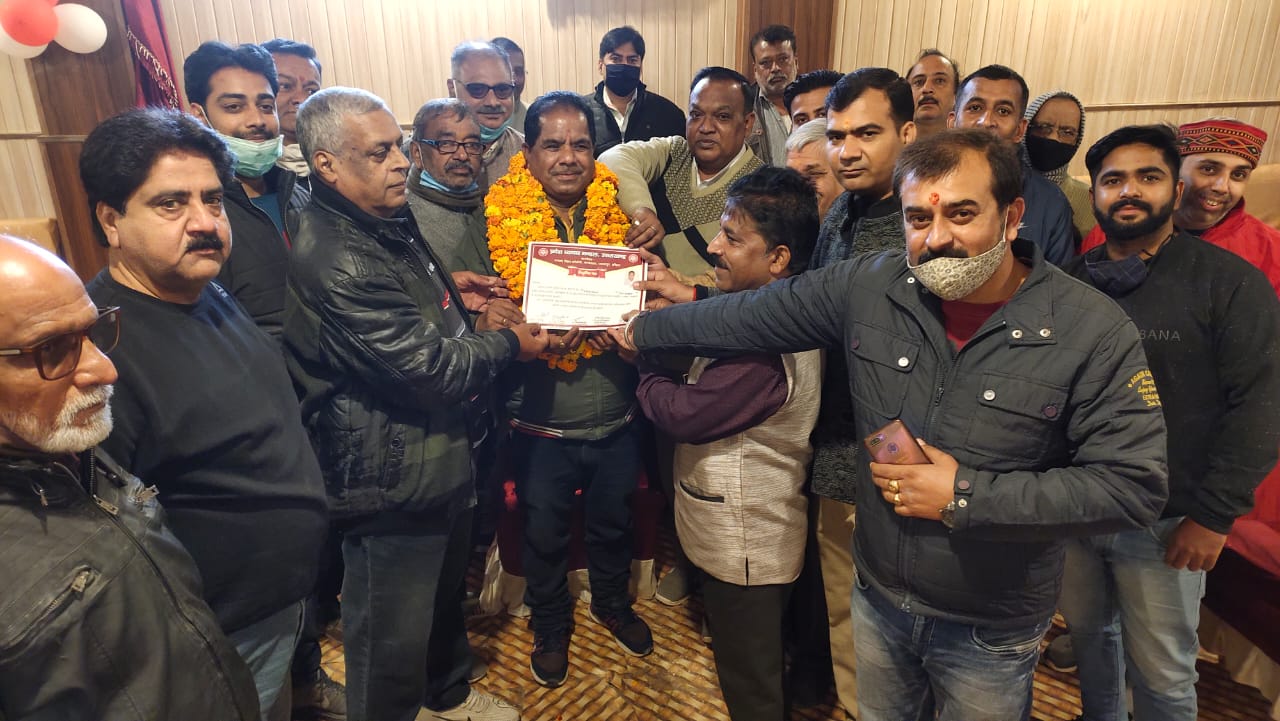 हरिद्वार, 16 दिसंबर। प्रदेश व्यापार मण्डल के जिला उपाध्यक्ष बनाए गए राजेंद्र वधावन का व्यापारियों ने फूलमालाएं पहनाकर स्वागत किया। सुभाष घाट स्थित एक होटल में आयोजित बैठक के दौरान राजू वधावन का स्वागत करते हुए प्रदेश अध्यक्ष संजीव चैधरी व मुख्य संरक्षक सुरेश ठाकुर ने कहा कि राजू वधावन के उपाध्यक्ष बनने से व्यापार मण्डल की एकजुटता को बढ़ावा मिलेगा। व्यापारी हितों में मिलजुल कर प्रयास करने होंगे। कुंभ मेले को देखते हुए व्यापारियों के हितों में शासन प्रशासन को भी चेताया जाएगा।