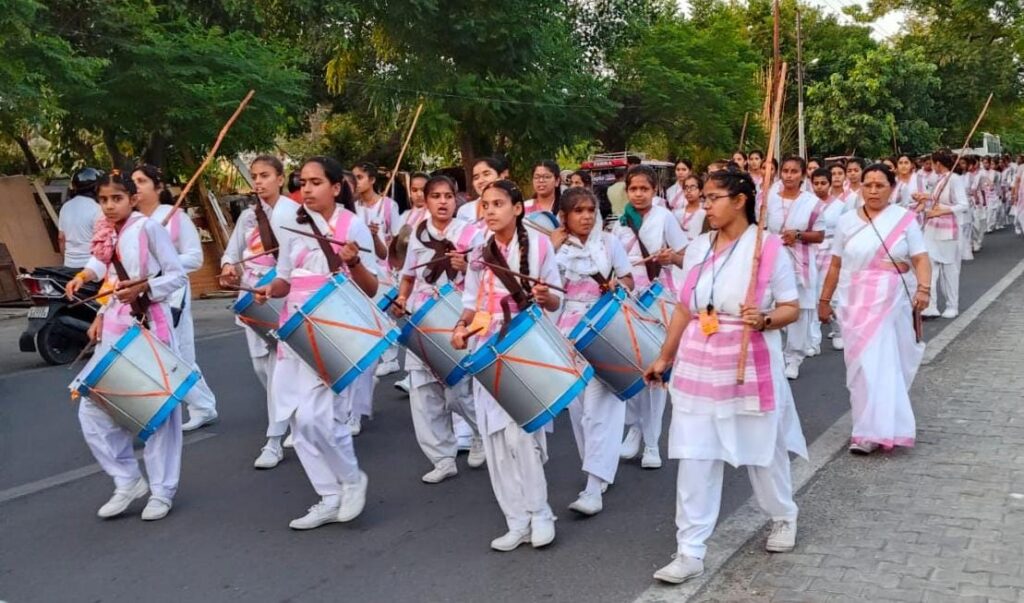 उन्होंने बताया कि बहनों के कौशल प्रदर्शन के लिए नगर में पथ संचलन किया गया।