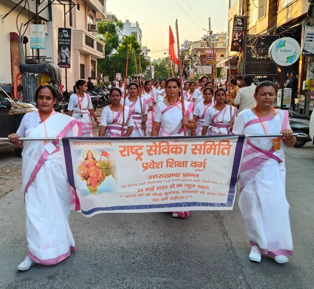 हरिद्वार। राष्ट्र सेविका समिति द्वारा बुधवार की शाम सरस्वती विद्या मंदिर सेक्टर-2 से भगत सिंह चौक,विवेक विहार,चंद्राचार्य चौक होते हुए प्रेम नगर आश्रम के सामने मॉर्डन कालोनी होते हुए वापसी भगत सिंह चौक से सरस्वती विद्या मंदिर तक स्वयं सेविकाओं ने पथ संचलन किया। स्वयं सेविकाओं पर जगह जगह फूलों की वर्षा हुई।