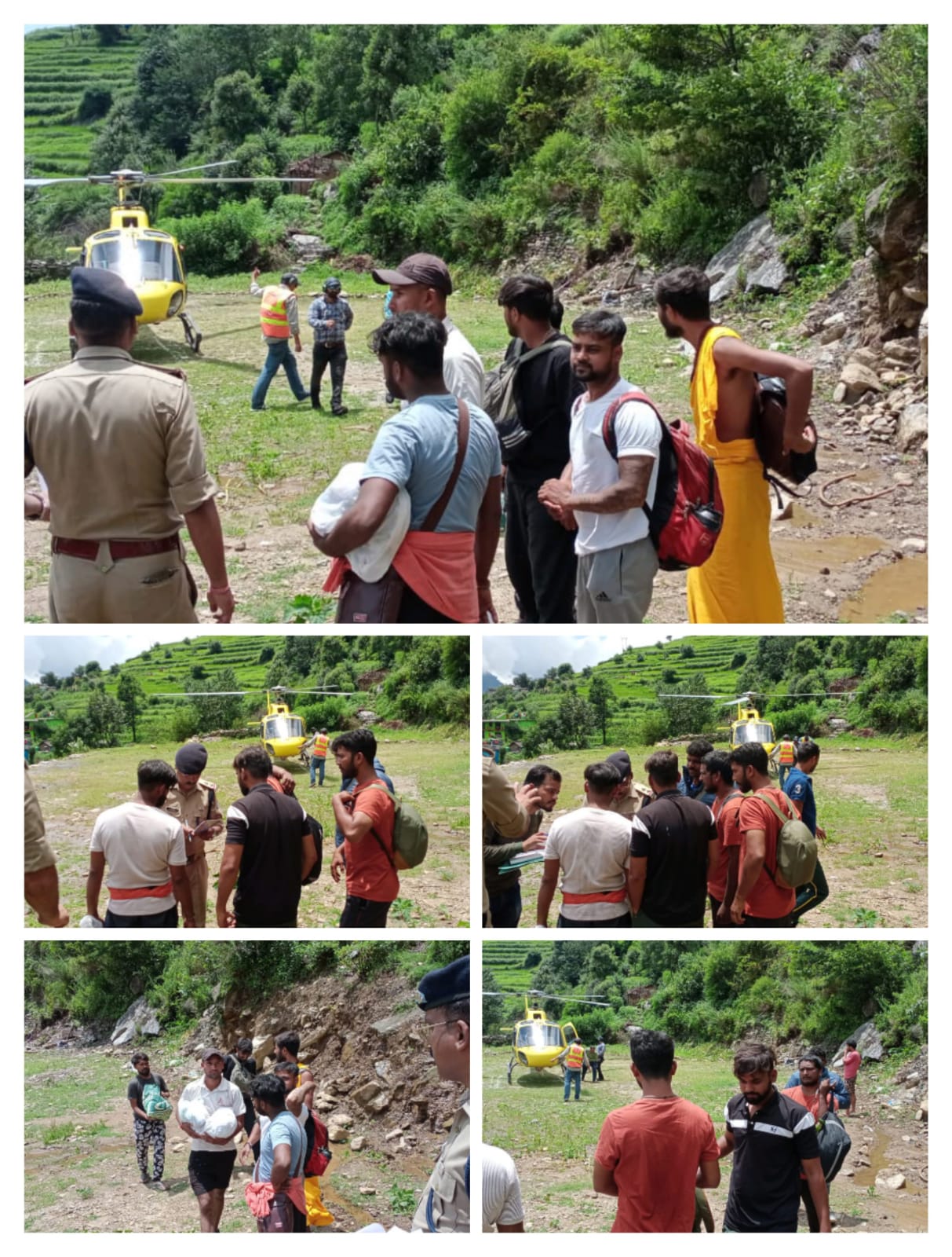 रुद्रप्रयाग:-मदमहेश्वर मंदिर ट्रैक पर बनतोली गौंडार में मार्कण्डेय नदी पर बने पुल के बहने से ट्रैक पर फंसे लोगों का रेस्क्यू जिलाधिकारी सौरभ गहरवार की निगरानी में सफलता पूर्वक जारी है। फंसे हुए लोगों का संपर्क उनके परिजनों से कराए जाने के साथ ही उन्हें जिला प्रशासन की ओर से फूड पैकेट्स भी वितरित किए जा रहे हैं।