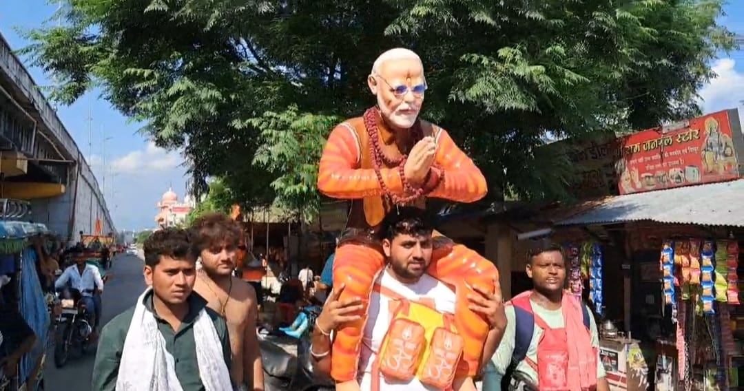 हरिद्वार:-देश के प्रधानमंत्री नरेंद्र मोदी की लोकप्रियता का नजारा धर्म नगरी हरिद्वार में देखने को मिला। शिव भक्त कावड़िया अपने कंधों पर प्रधानमंत्री नरेंद्र मोदी की प्रतिमा लेकर हरिद्वार से बागपत के लिए रवाना हुआ। शिव भक्त कावड़िया रूपेंद्र तोमर ने बताया कि प्रतिमा का वजन साढ़े आठ किलो का है 2 से 3 महीने प्रतिमा को तैयार करने में लगे हैं।
