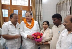 हरिद्वार, 5 मई। जय मां मिशन की परमाध्यक्ष साध्वी शरण ज्योति मां के नेतृत्व में मिशन की साध्वियों जीवन ज्योति मां व पूजा ज्योति मां ने कनखल स्थित श्री पंचायती अखाड़ा महानिर्वाणी में अखिल भारतीय अखाड़ा परिषद के अध्यक्ष श्रीमहंत रविंद्रपुरी महाराज का फूलमाला पहनाकर स्वागत किया। इस दौरान अखाड़ा परिषद अध्यक्ष एवं महानिर्वाणी अखाड़े के सचिव श्रीमहंत रविंद्रपुरी महाराज ने कहा कि संत महापुरूषों को जीवन सदैव राष्ट्र कल्याण के लिए समर्पित होता है।
