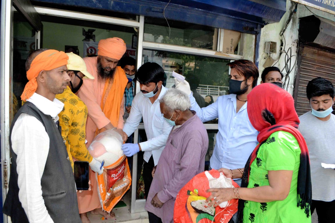 श्री पंचायती अखाड़ा निर्मल के महंत सतनाम सिंह महाराज के सहयोग से 70 निर्धन परिवारों को आटा, चावल, दाल, आलू, तेल, मसाले आदि के रूप में राशन वितरित किया गया। विकास कुमार ने कहा कि निस्वार्थ सेवा भाव से संत महापुरूष अपने उत्तरदायित्व को निभाते चले आ रहे हैं। गरीब, असहाय, निर्धन, बेसहारा परिवारों को लाॅकडाउन में खाद्य सामग्री निरंतर निर्मल अखाड़े के द्वारा प्रदान किया जाना प्रशसंनीय है। लाॅकडाउन में मजदूर वर्ग अपनी रोजी रोटी नहीं कमा पा रहा है। ऐसे में श्रमिक वर्ग की जरूरतों को पूरा हमारा कर्तव्य बनता है। महंत सतनाम सिंह महाराज ने कहा कि कोरोना वायरस का फिलहाल कोई इलाज नहीं है। इस घातक वायरस का संक्रमण रोकने के लिए सरकार को लाॅकडाउन करना पड़ा।