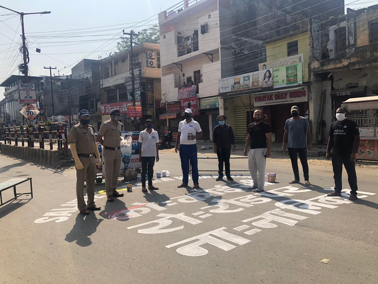 सड़कों पर बनाए गए स्लोगन लक्ष्मण रेखा नहीं लांघने की याद दिलाते हुए लोगों को सचेत करेंगे। उन्होंने बताया कि बीइंग भगीरथ की ओर से विभिन्न संस्थाओं के सहयोग से अब तक चार हजार जरूरतमंदों को राशन किट दी गयी हैं। कंटेनमेंट जोन में भी जरूरतमंदों तक मदद पहुंचायी जा रही है। अंकित शर्मा, मोहित विश्नोई, हितेश चैहान, ओमशरण गुप्ता, वेणुगोपाल त्यागी, कुणाल धवन, सचिन गांधी, मोहित शर्मा, डीपी कुमार, विशाल जाॅन, रजनीश चैहान, सौरभ चैहान, शिवम चैहान, अतुल चैहान, विकास चैहान, हन्नी सैनी, हर्षित मिश्रा, मयंक सोलंकी आदि टीम के सदस्य मौजूद रहे।